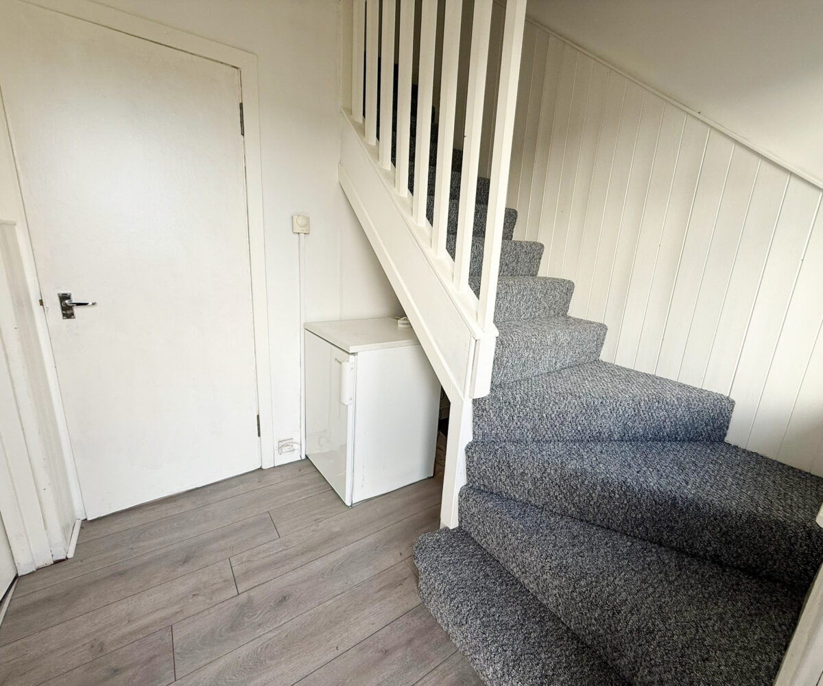 The accommodation over two levels comprises on the ground floor a welcoming entrance hallway with understair storage space, a full length lounge diner with dual aspects for plenty of natural light and a good sized fitted kitchen. On the upper level there are 2 double bedrooms with storage in the second bedroom, and completing the accommodation is a wet-walled bathroom with suite in white.