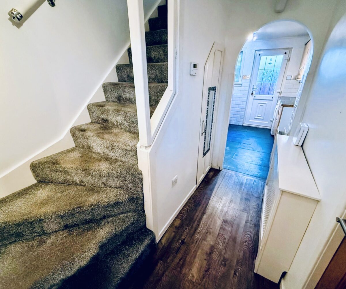 The accommodation over two levels comprises on the ground floor a welcoming entrance hallway, a generous sized lounge with dual aspects, a modern galley style kitchen with ample base & wall units. On the upper level the property has two double bedrooms and a good sized shower room.