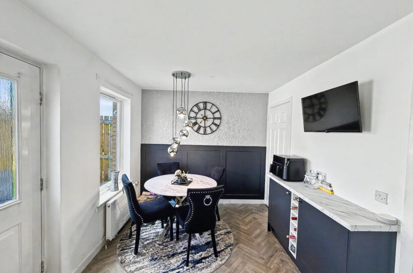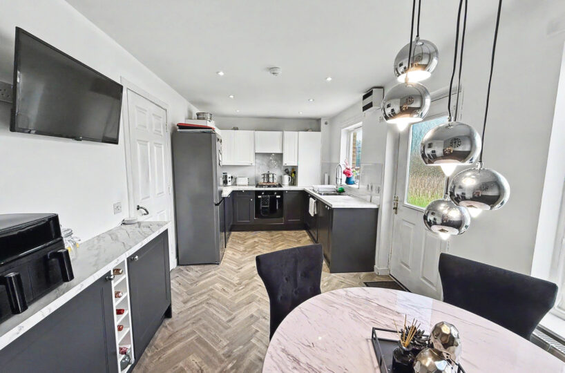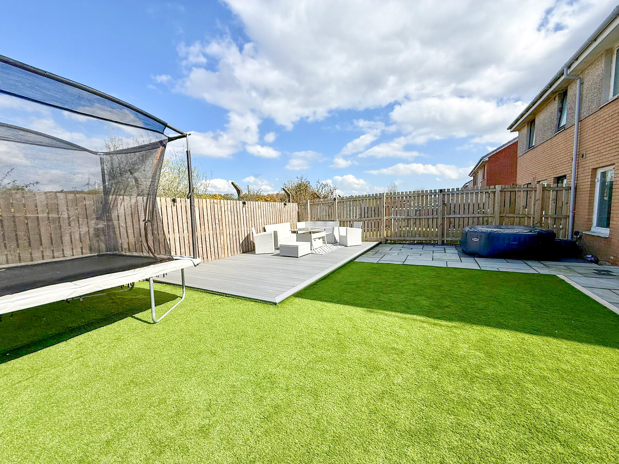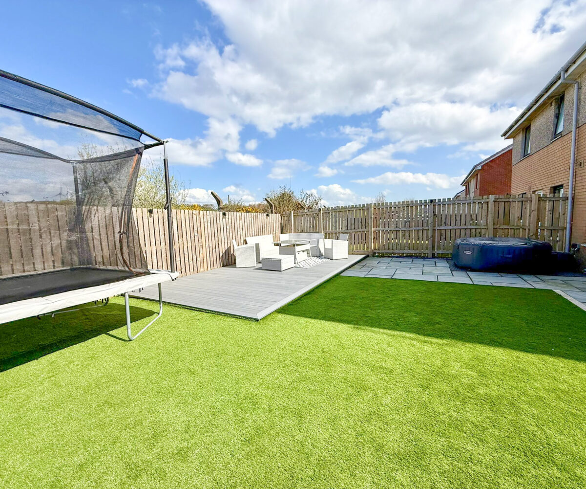 Externally the property benefits from a generous front driveway which is monoblocked for easy maintenance providing ample off street parking. To the rear you’ll find a fully enclosed garden designed for both relaxation and play, featuring a combination of patio, decking and artificial lawn – ideal for entertaining or enjoying family time. A standout feature is the open backdrop offering a sense of privacy with no houses directly behind.