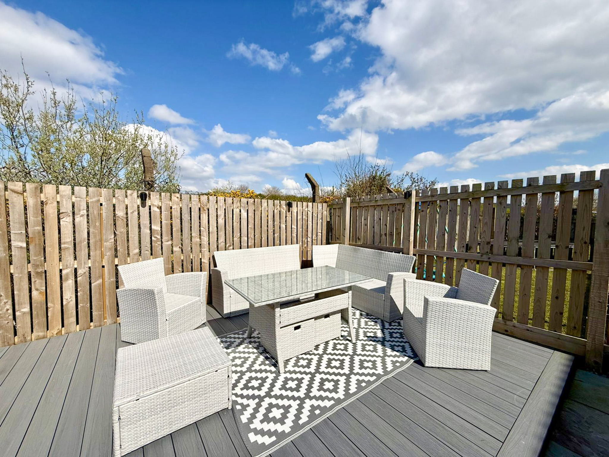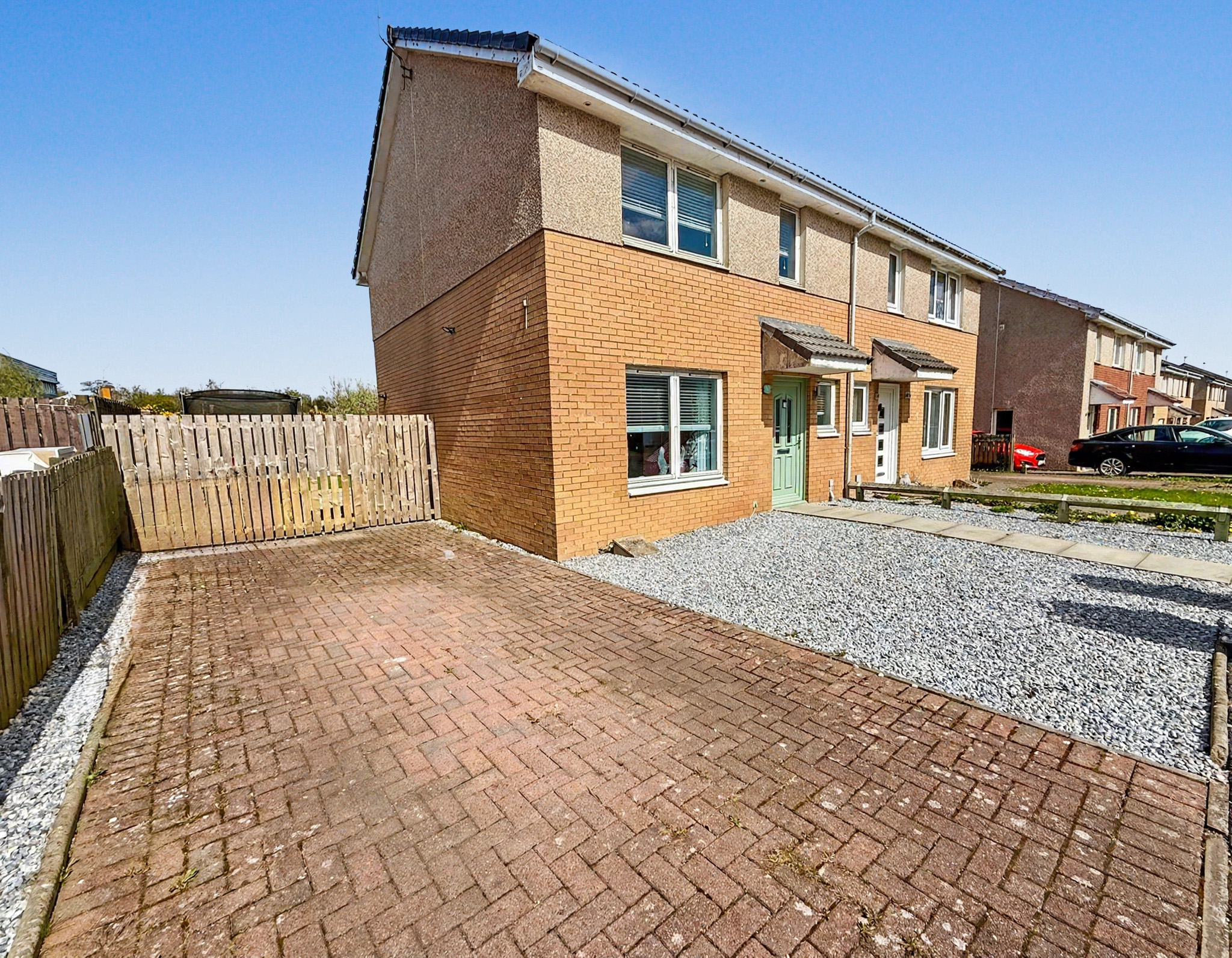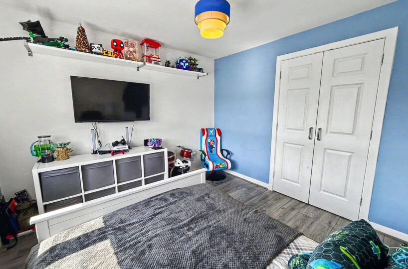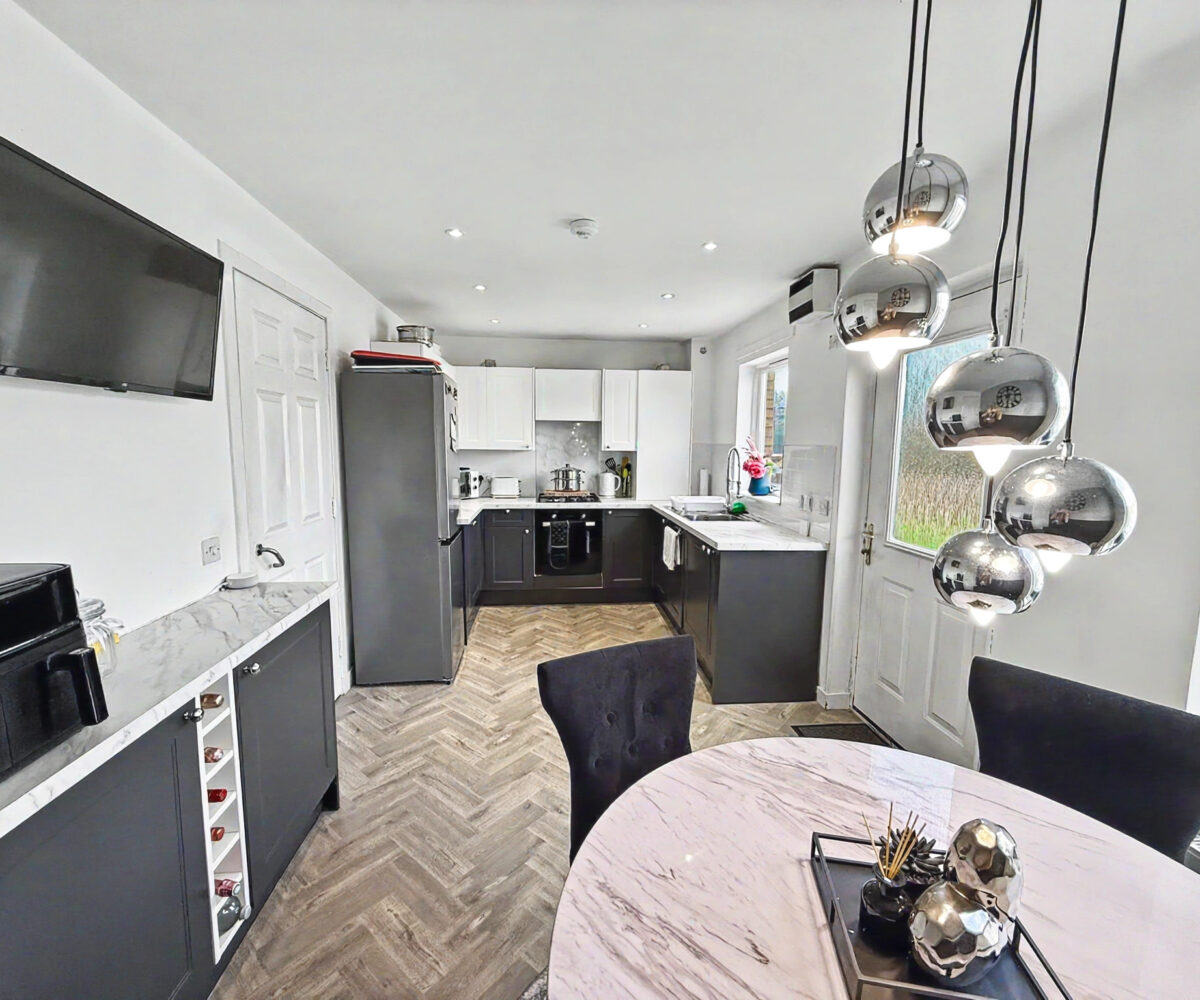 Externally the property benefits from a generous front driveway which is monoblocked for easy maintenance providing ample off street parking. To the rear you’ll find a fully enclosed garden designed for both relaxation and play, featuring a combination of patio, decking and artificial lawn – ideal for entertaining or enjoying family time. A standout feature is the open backdrop offering a sense of privacy with no houses directly behind.