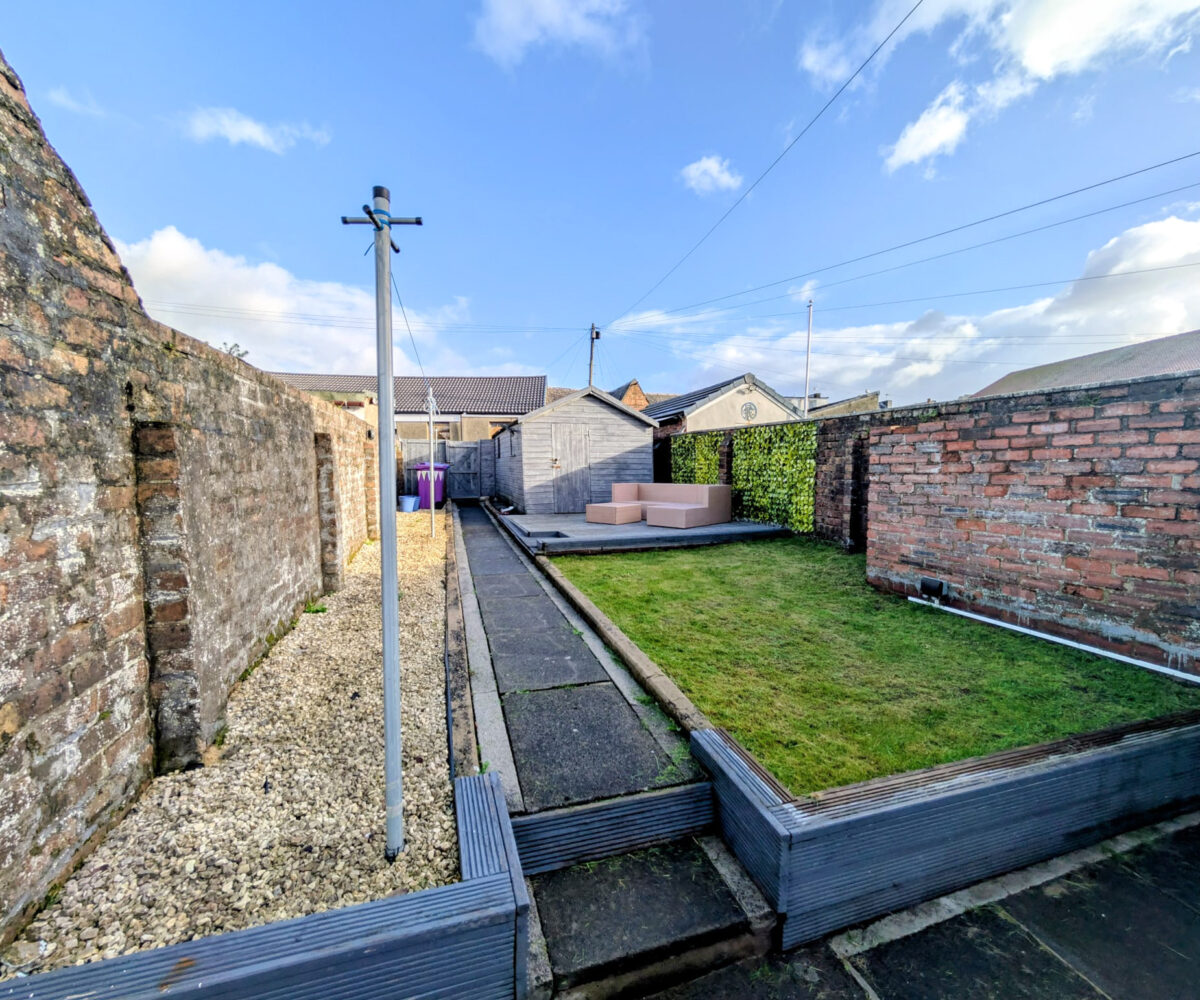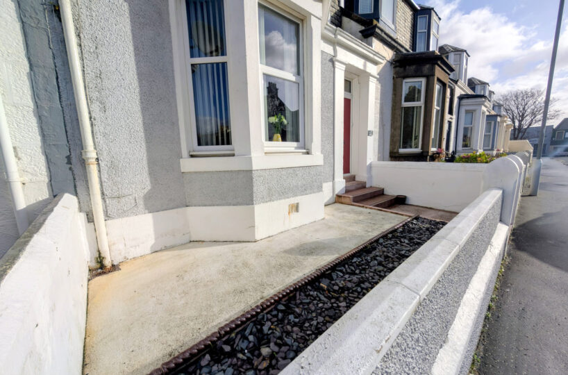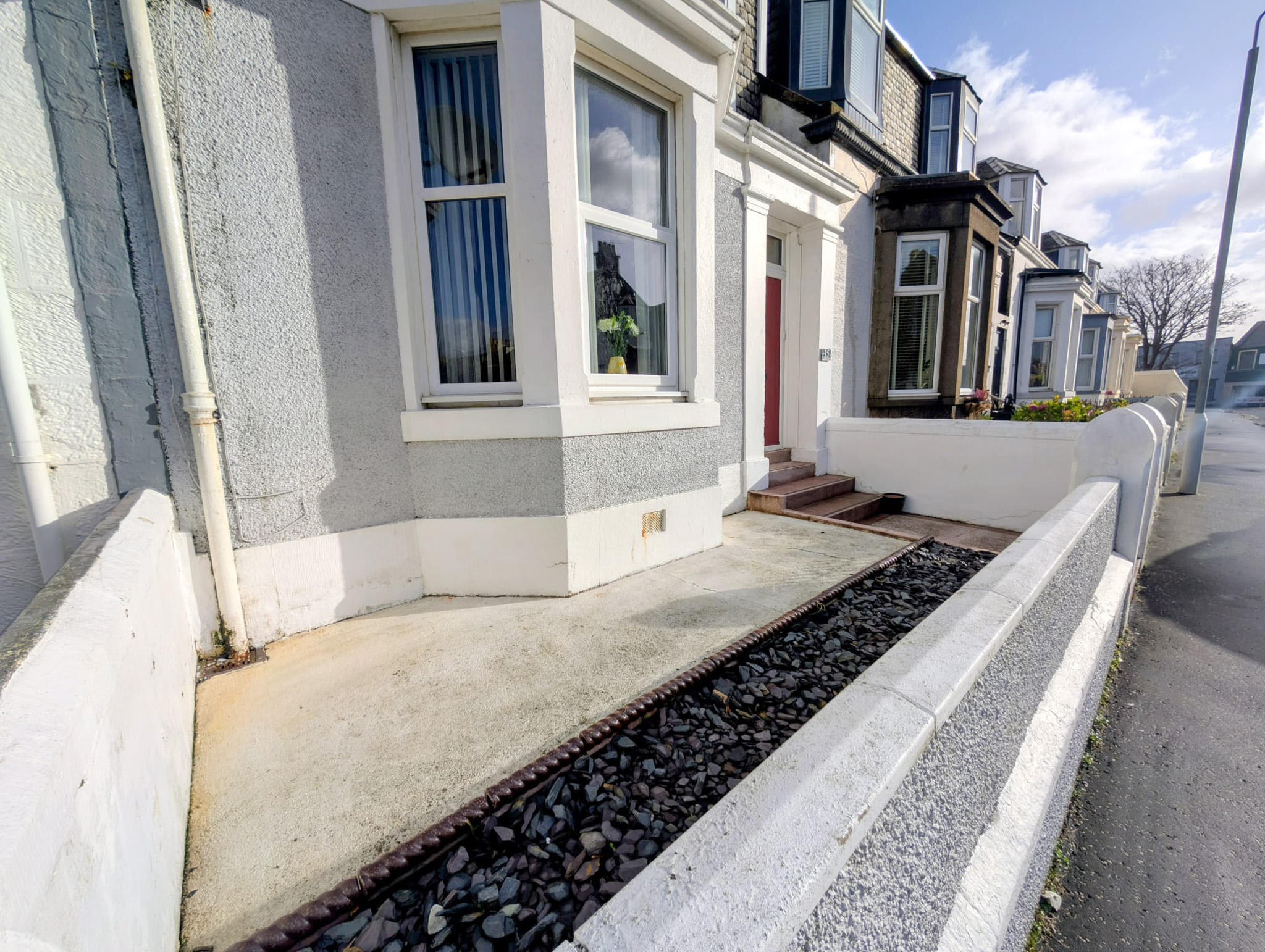 The front of the property has a walled garden which is chipped and paved for easy maintenance.