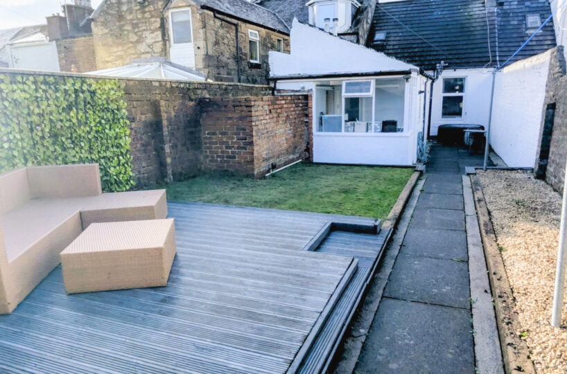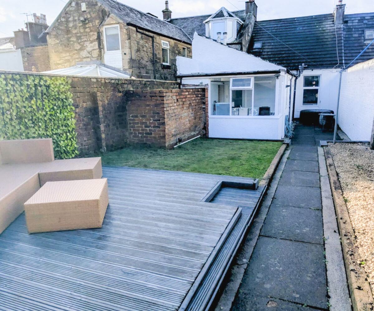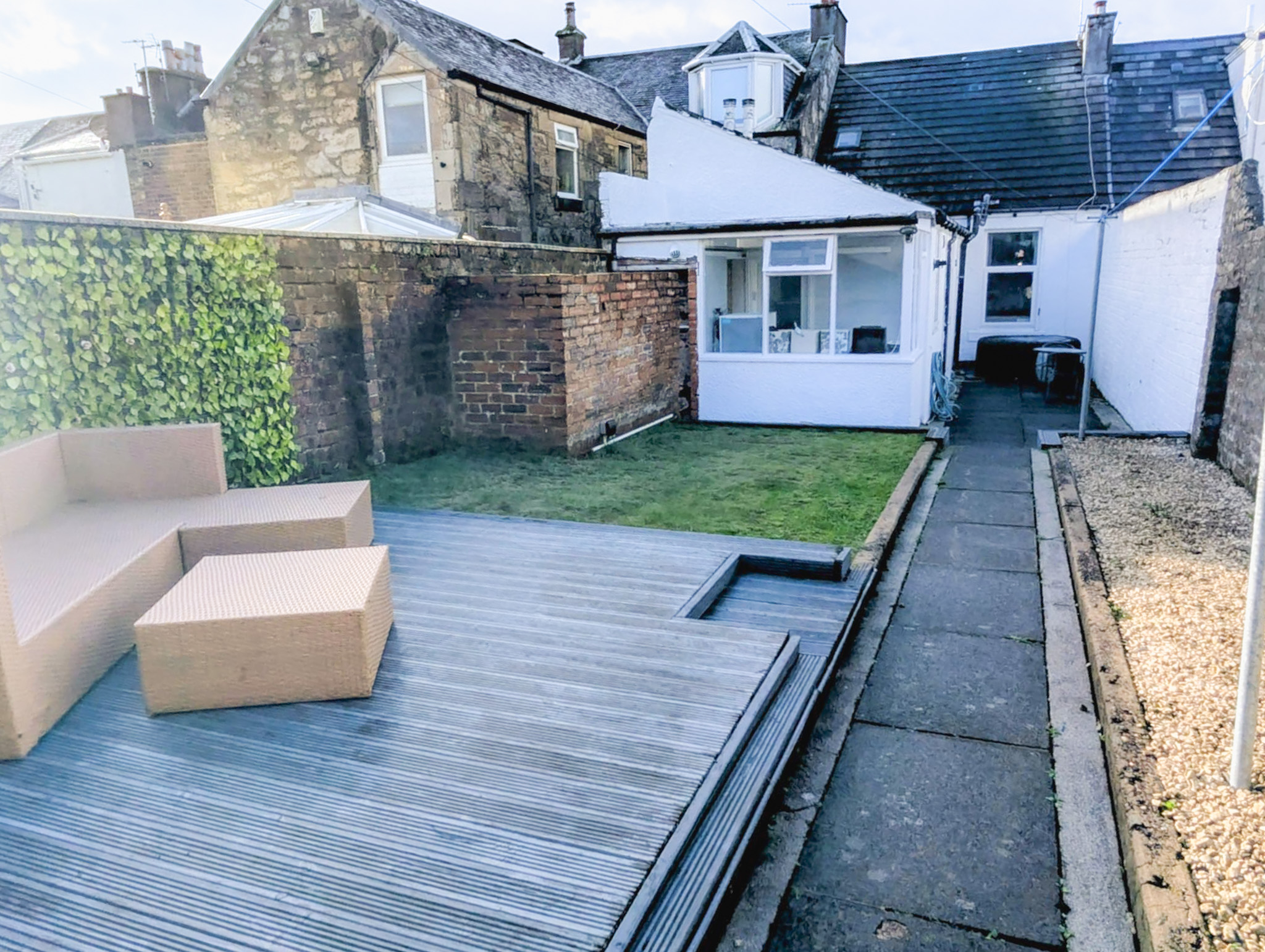 Externally the property benefits from a generous landscaped rear garden which has a lawn, a decked seating area and a decorative chipped border with drying lines. There is a timber garage at the rear for secure off road parking.