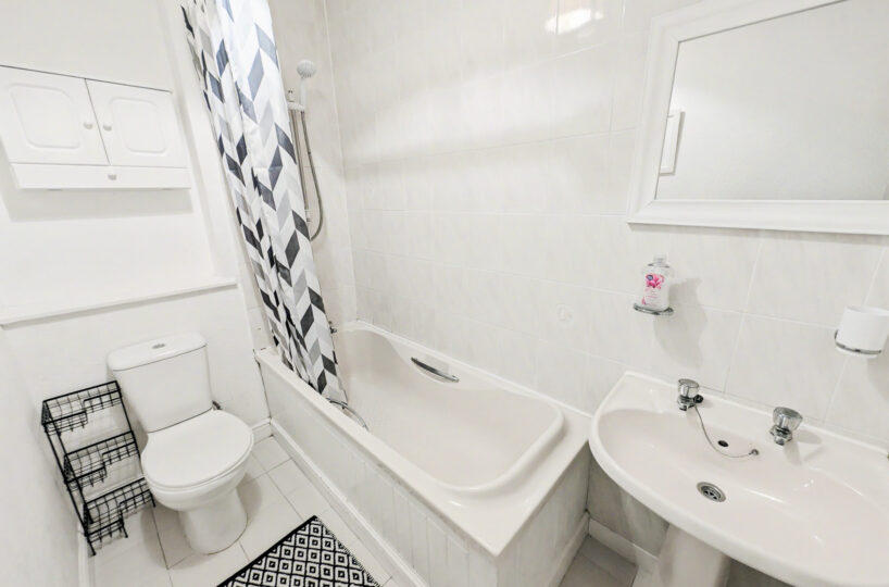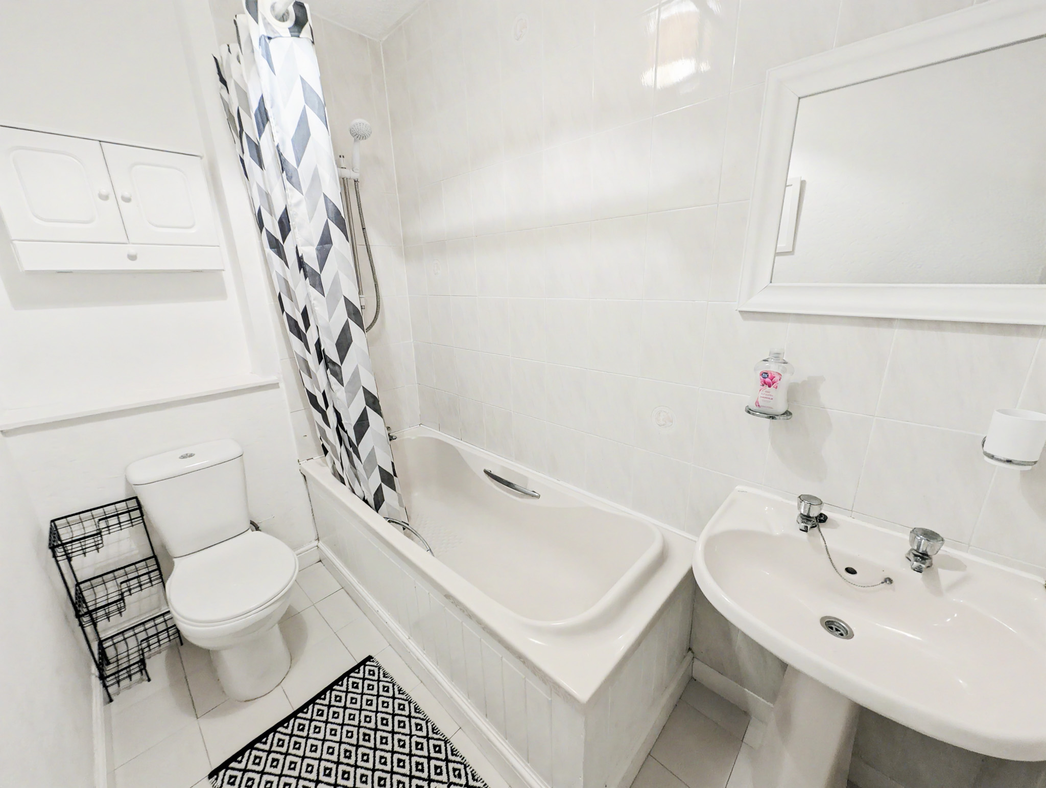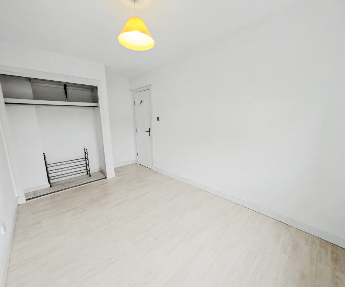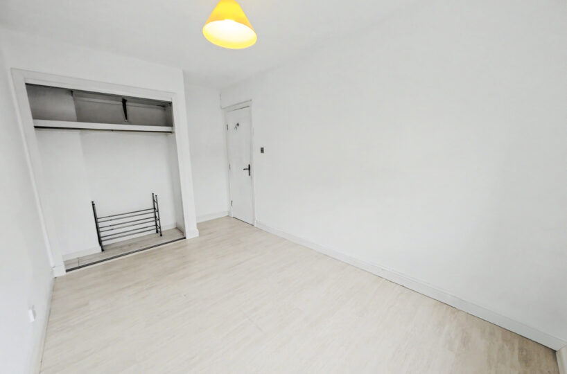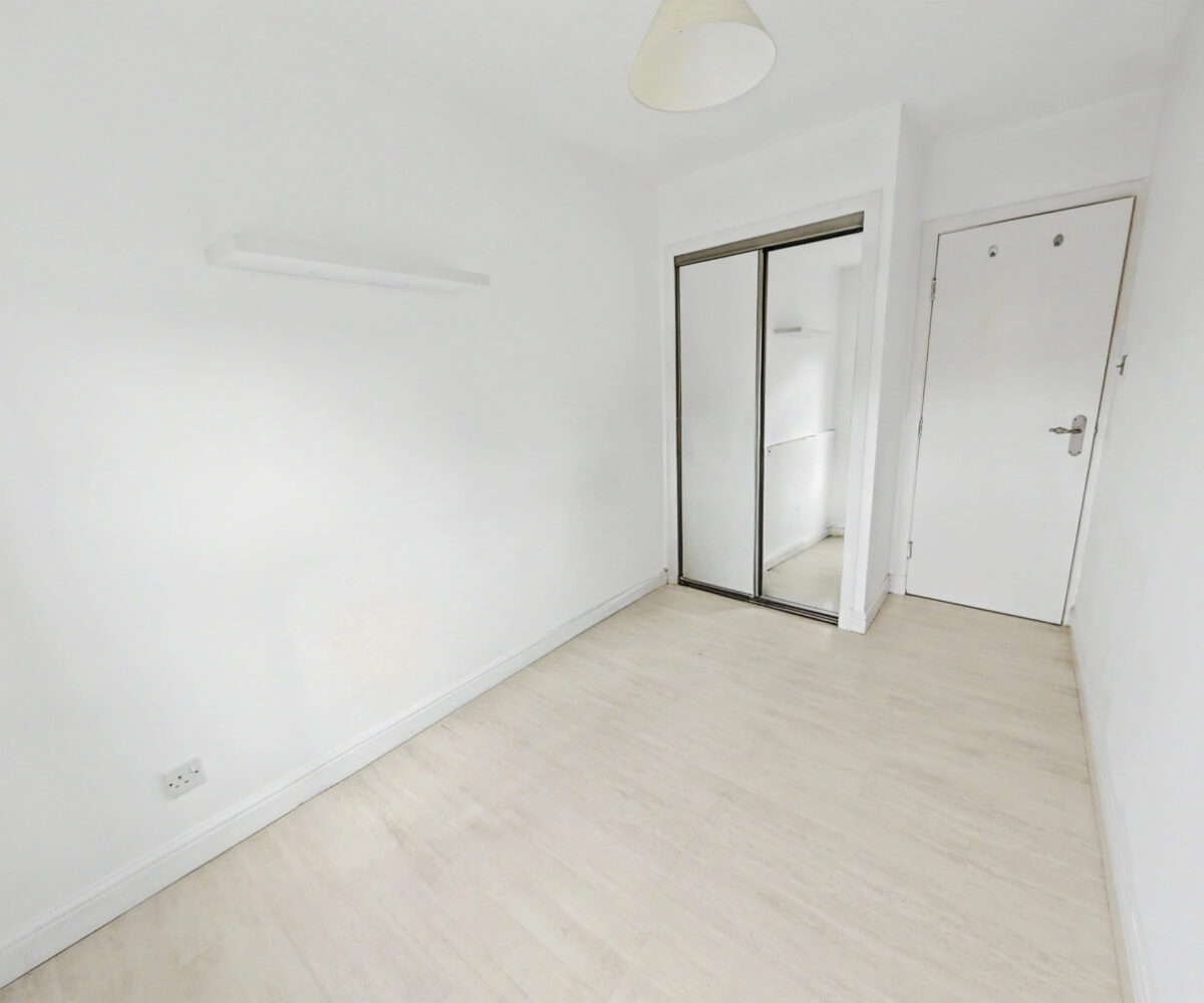 The accommodation on the first floor comprises a welcoming reception hallway with a cupboard for storage, a light filled living room, a modern kitted kitchen, two double bedrooms, both with integrated wardrobes, and completing the accommodation is a tiled bathroom with a white 3 piece suite.