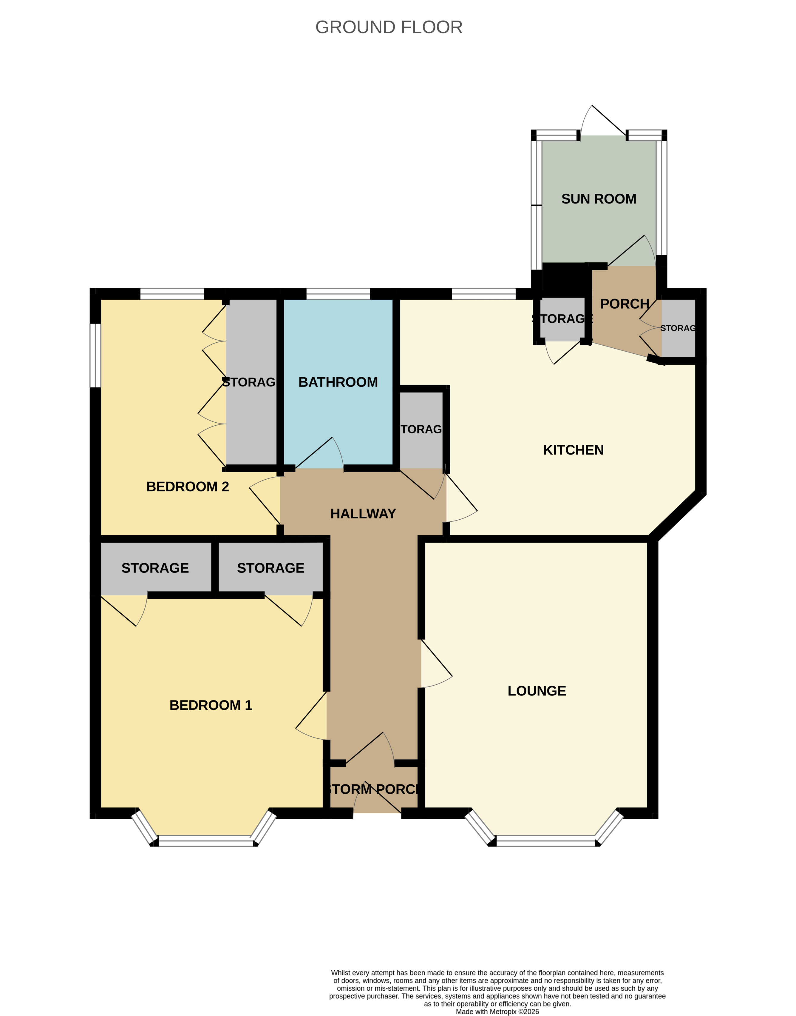 The accommodation comprises a bright lounge with a front facing bay window, a generous dining kitchen fitted with a range of base and wall cabinetry and with space for dining furniture, a rear porch leading to the sun room overlooking the garden, two double bedrooms, Bedroom 1 with a large bay window overlooking the front garden and completing the accommodation is a wet-walled shower room.