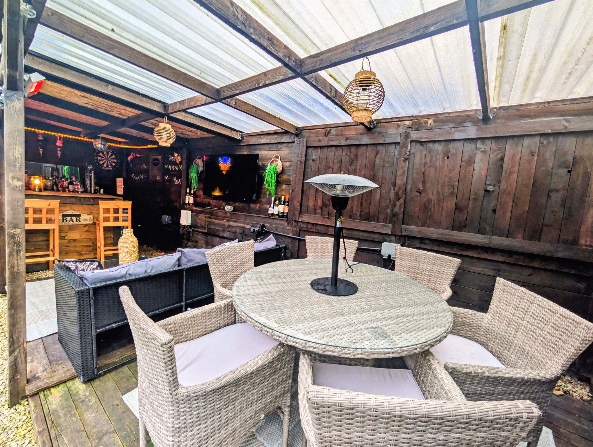All carpets and fitted flooring; all blinds; all light fittings and fixtures; all integrated appliances; the garden summer house/bar.