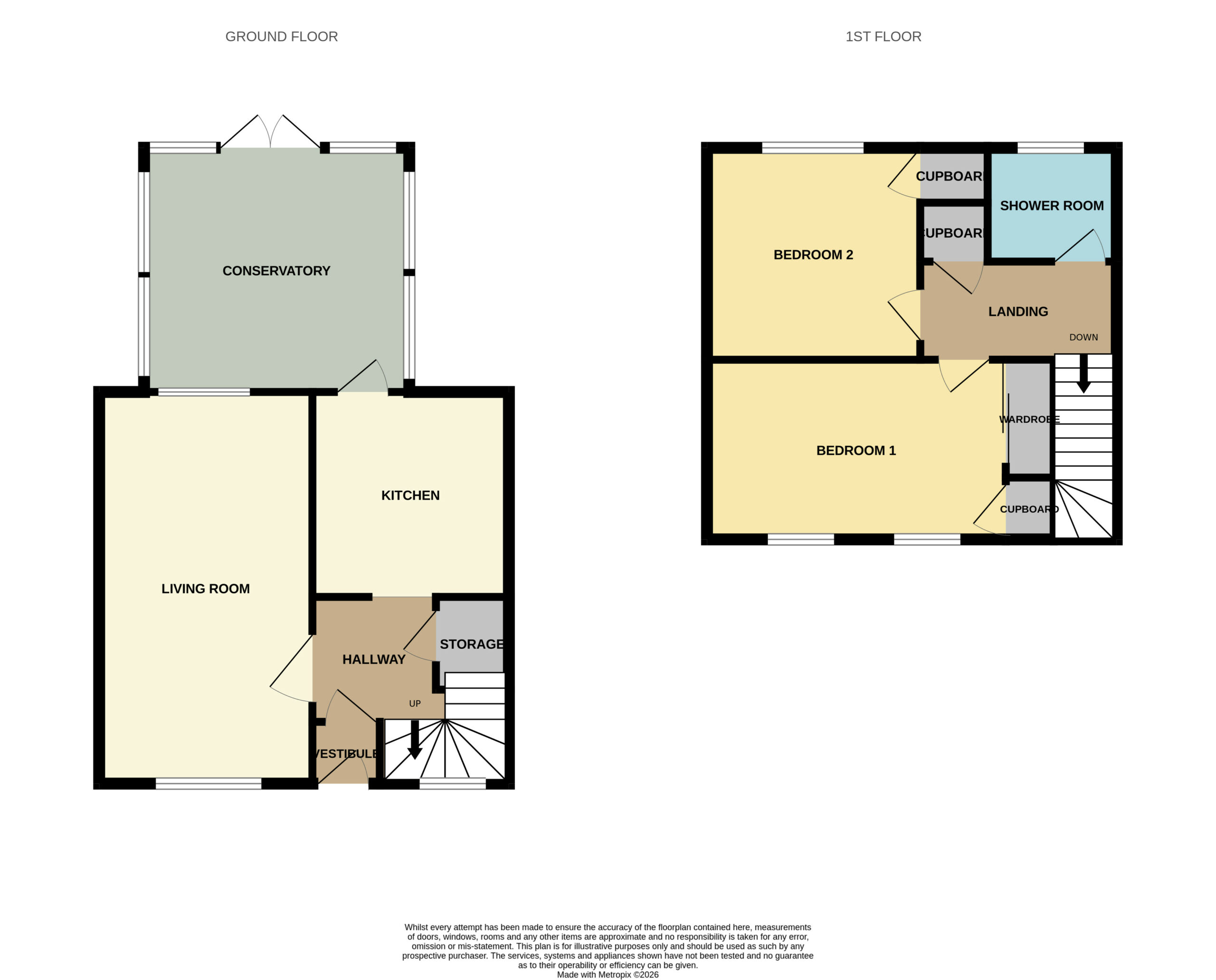The accommodation over two levels comprises on the ground floor a welcoming entrance porch and hallway, a generous lounge diner, a good sized fitted kitchen and a bright conservatory at the rear. On the upper level the property has 2 double bedrooms both with integrated storage and a shower room.