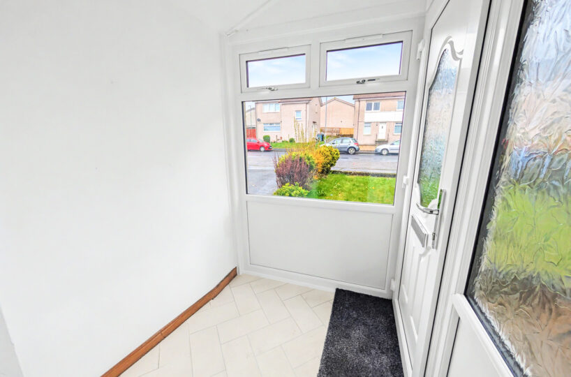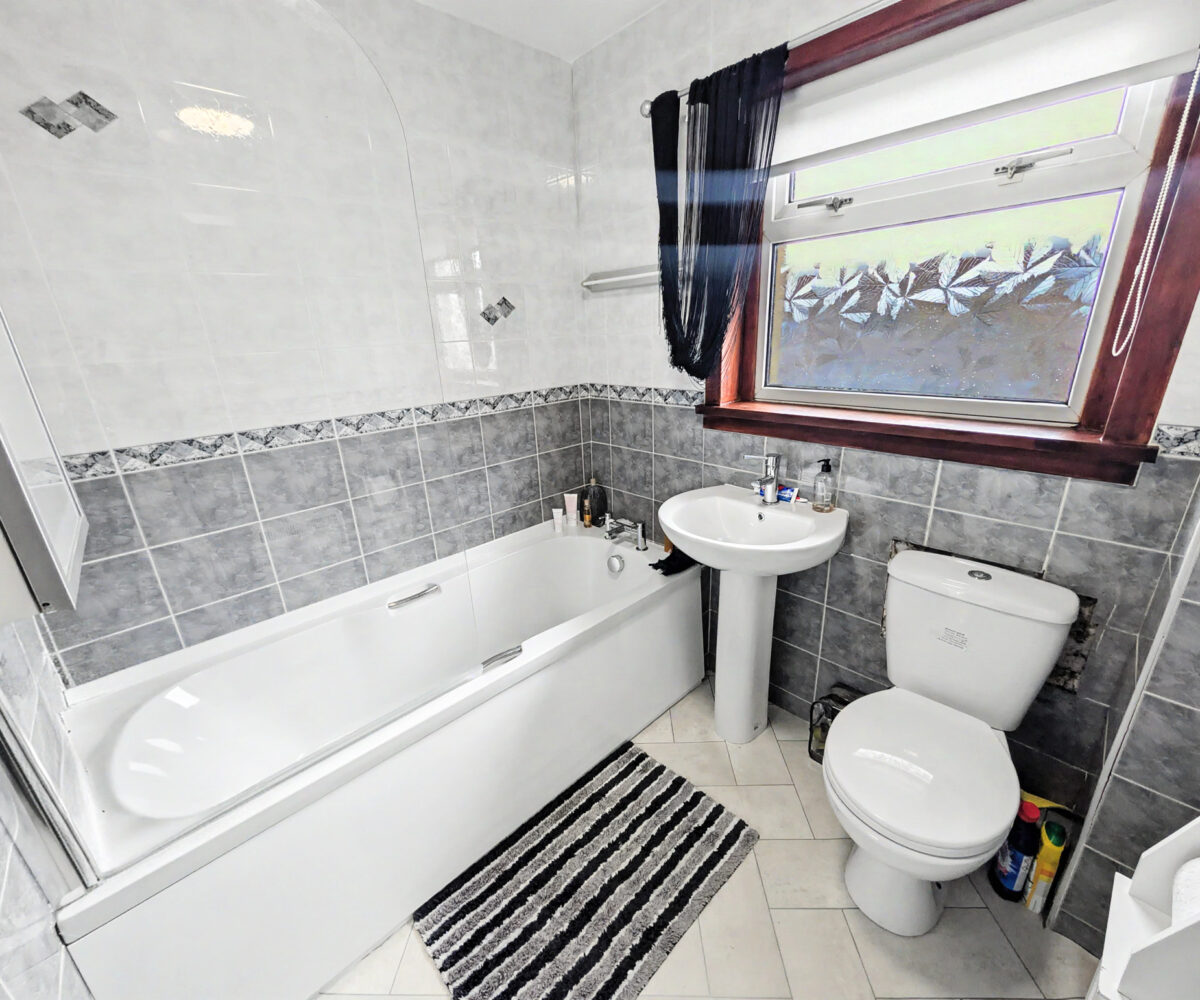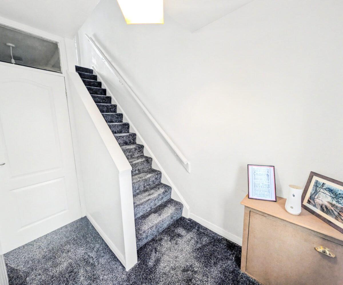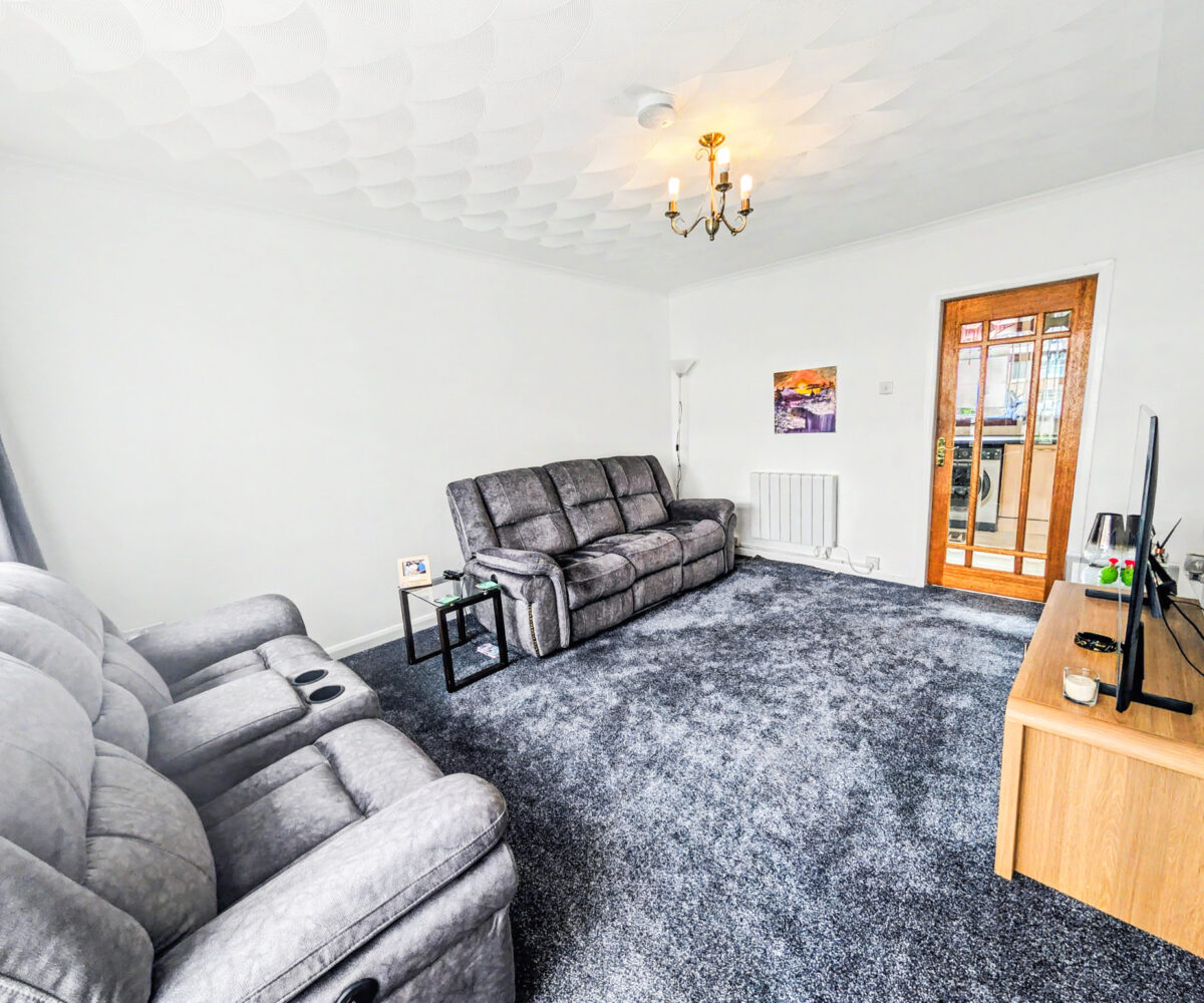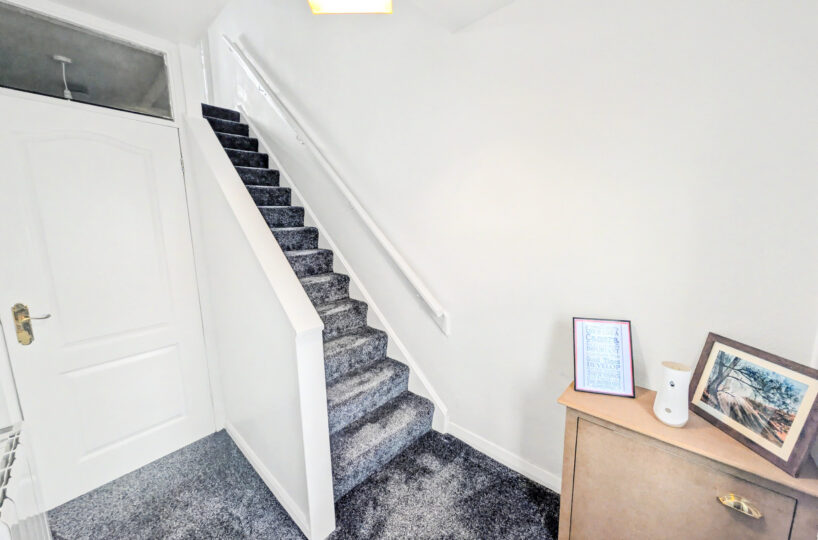 The accommodation over two levels comprises on the ground floor a welcoming storm porch, a bright hallway with generous storage, a spacious front facing lounge, a modern breakfasting kitchen and a rear porch providing additional storage and access to the garden. On the upper level the property has 3 beautifully finished bedrooms, Bedrooms 2 and 3 with cupboard space, and completing the accommodation is a tiled bathroom with a 3 piece suite in white.