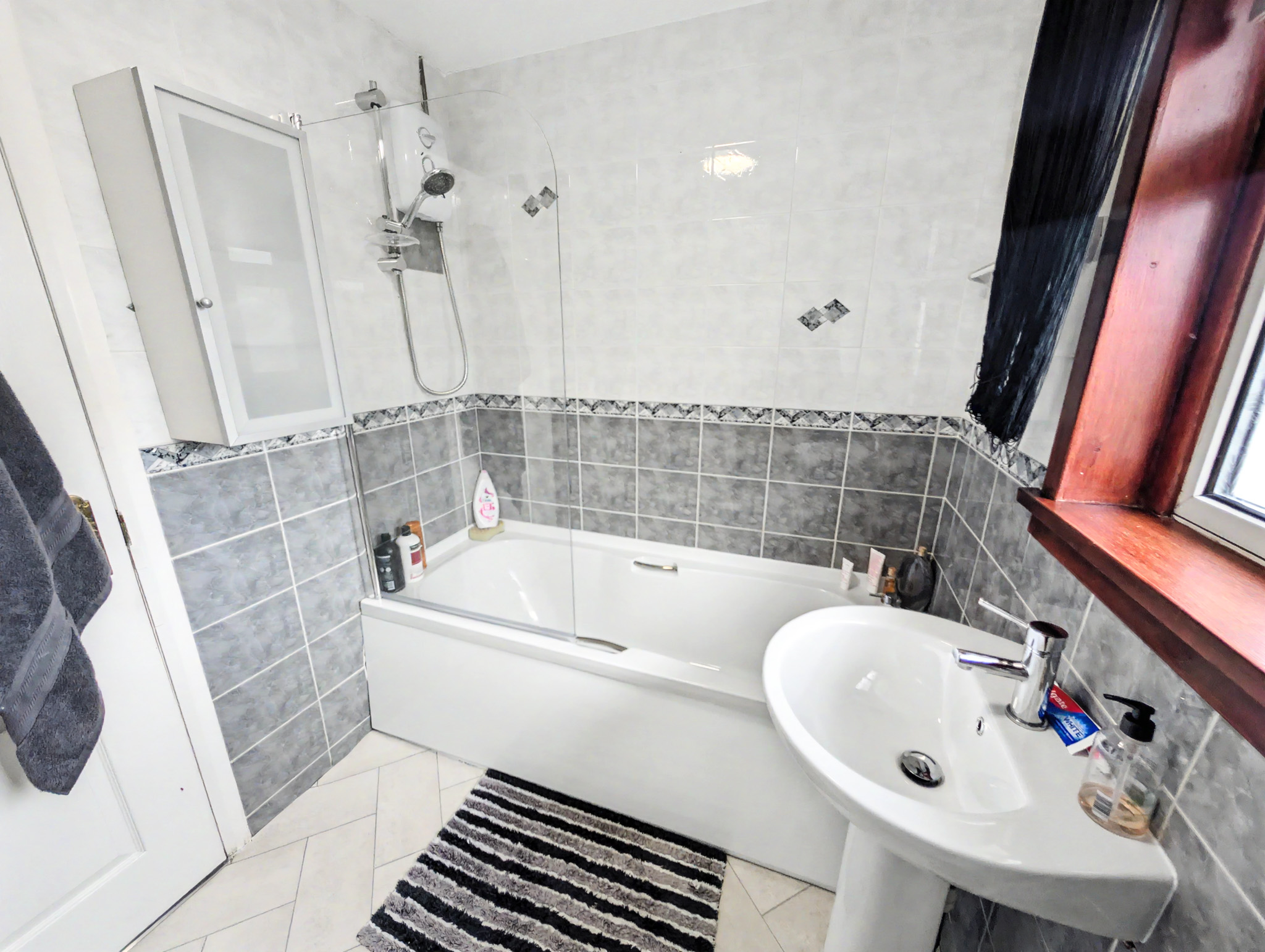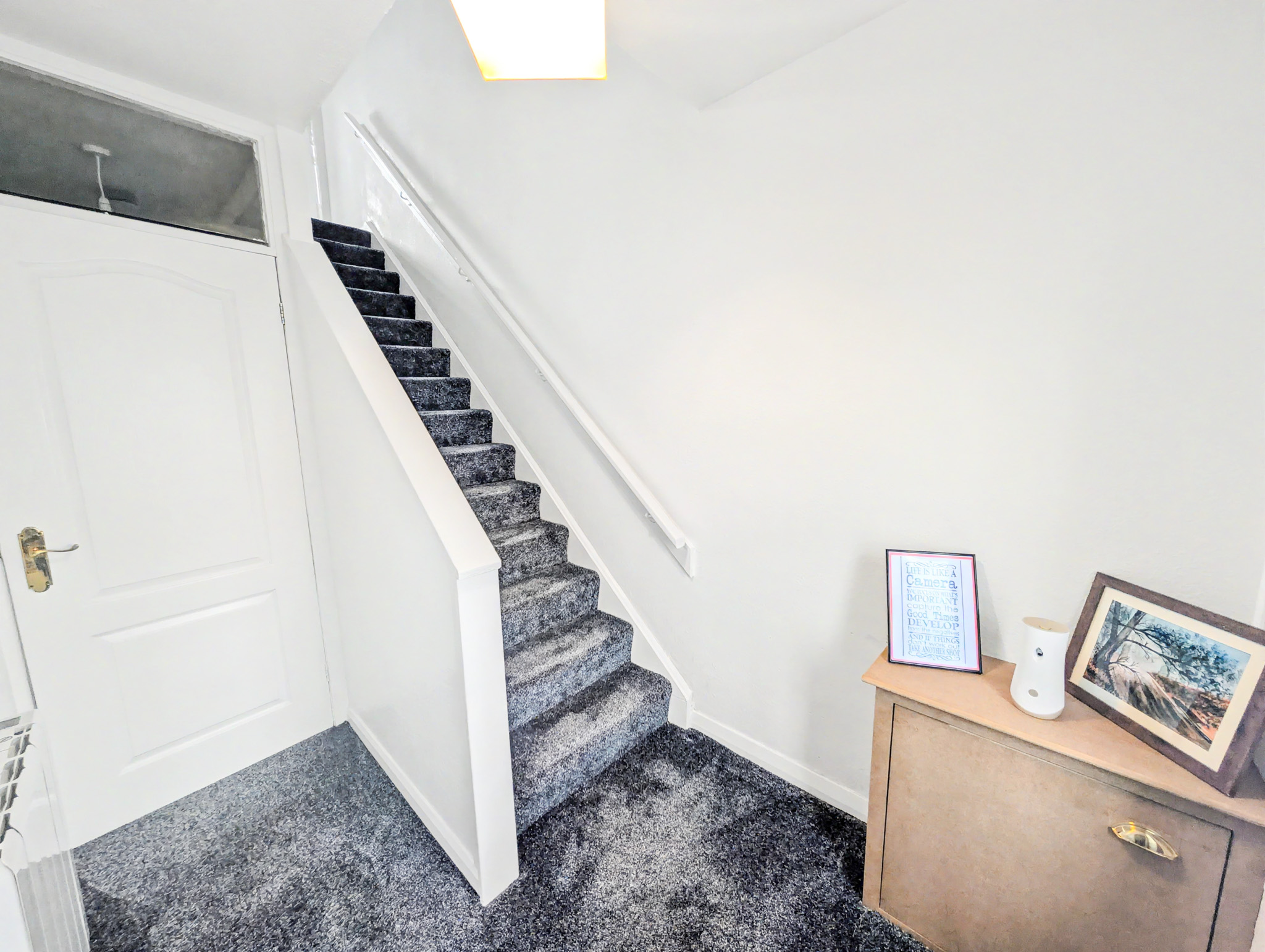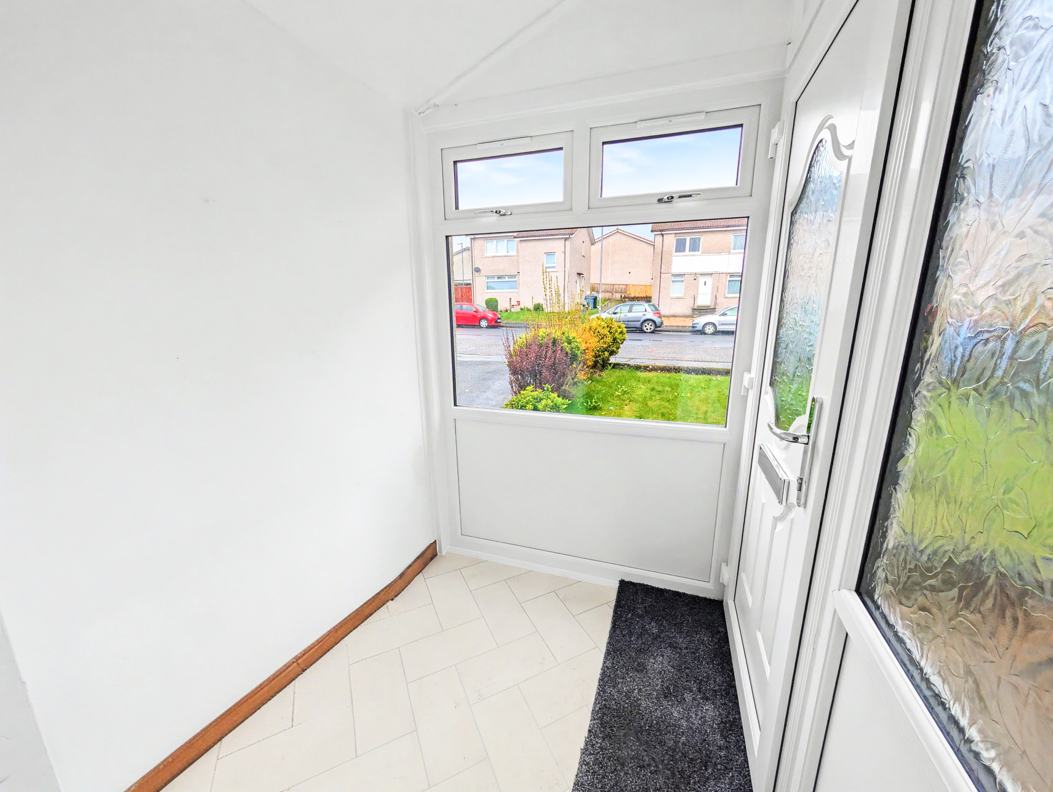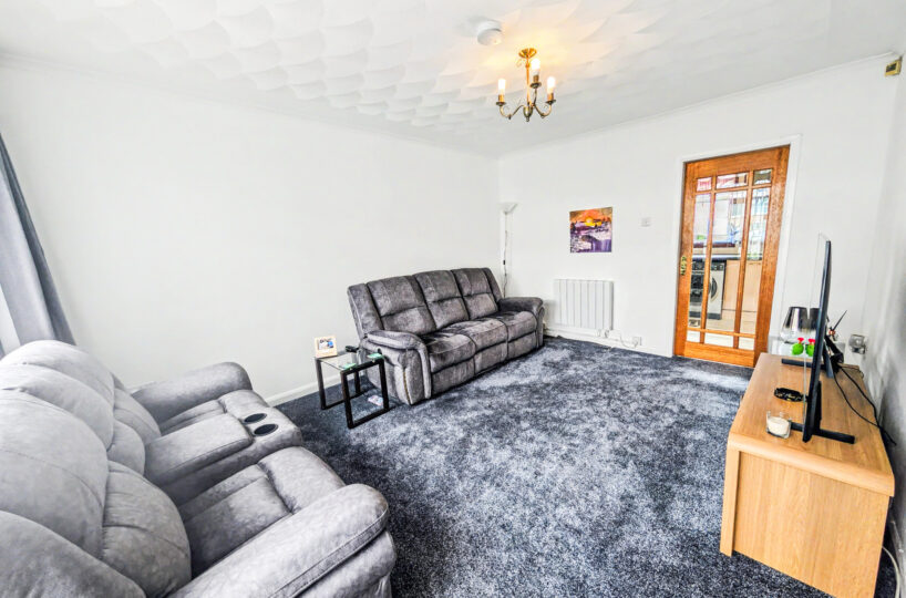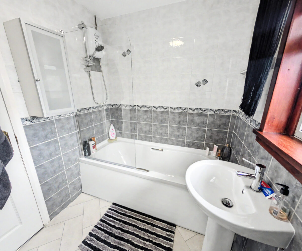 The accommodation over two levels comprises on the ground floor a welcoming storm porch, a bright hallway with generous storage, a spacious front facing lounge, a modern breakfasting kitchen and a rear porch providing additional storage and access to the garden. On the upper level the property has 3 beautifully finished bedrooms, Bedrooms 2 and 3 with cupboard space, and completing the accommodation is a tiled bathroom with a 3 piece suite in white.