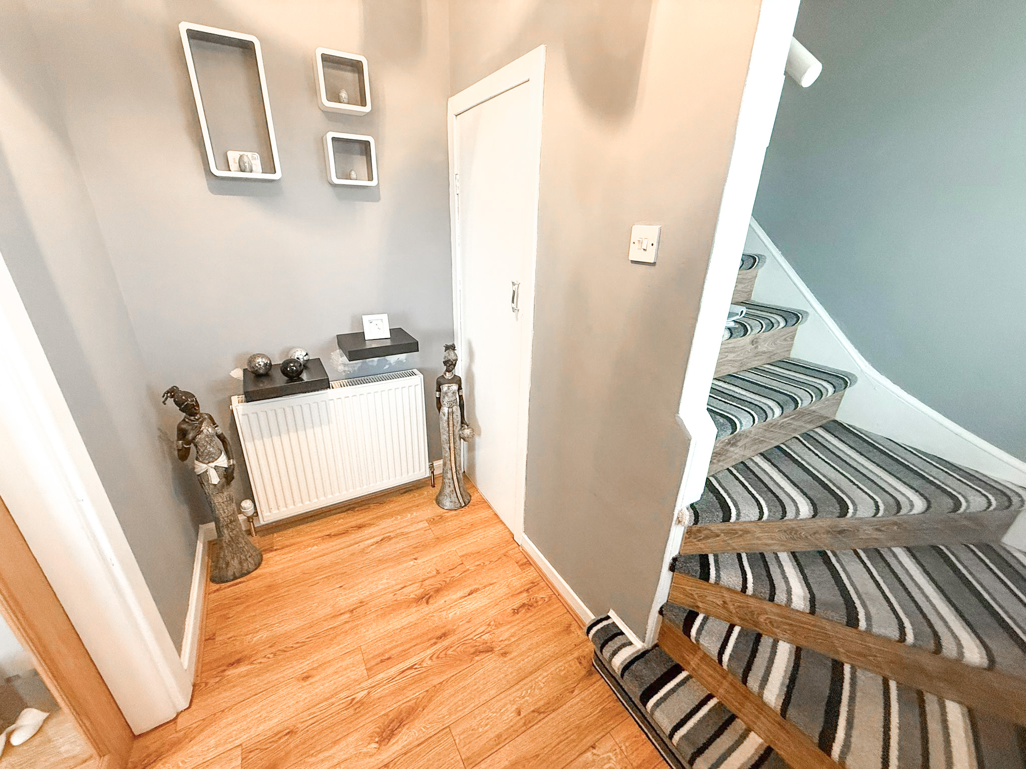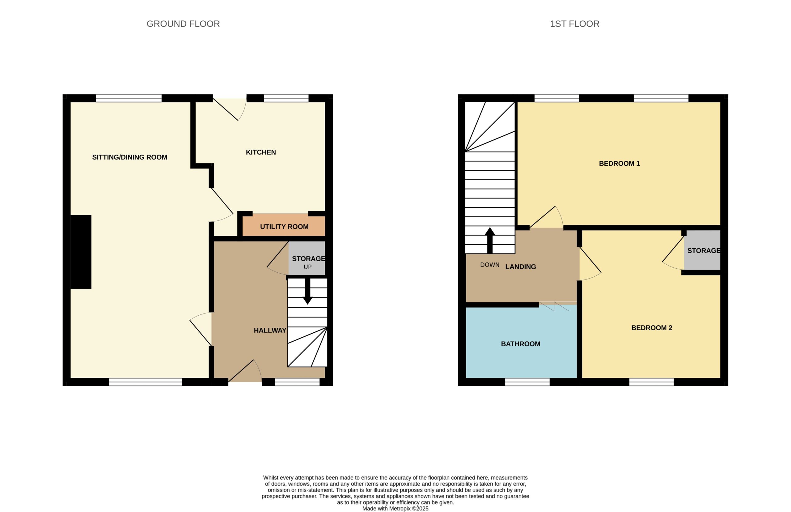 The accommodation over two levels comprises on the ground floor a welcoming entrance hallway with understair storage, a full length lounge diner with dual aspects allowing for plenty of natural light and a modern kitchen with separate utility space. On the upper level the property has 2 bright double bedrooms and an immaculate bathroom with 3 piece suite in white.