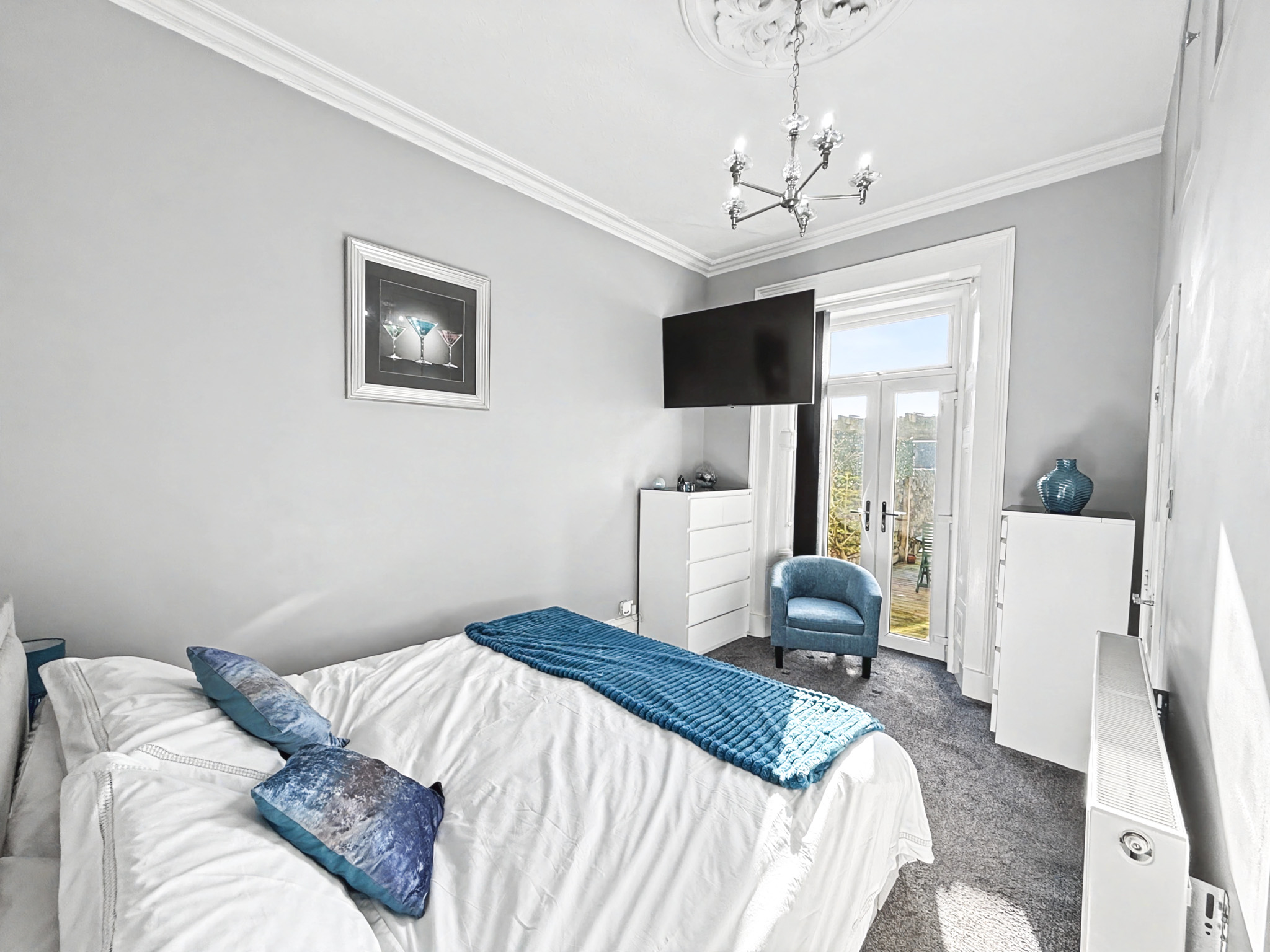 On entering the elegant hallway the high ceilings, archway and ornate corbels set the tone for the rest of the property. The formal lounge has a front facing bay window to capture natural daylight, and has traditional ceiling rose and cornicing and a striking feature fireplace. A double bedroom on the ground floor has French doors opening to a decked seating area and benefits from an en suite shower room. The family sitting room is tastefully decorated and brightly lit with French doors to the side of the property. The kitchen is a great size with generous cabinetry and work surfaces, space for dining furniture and a separate utility room provides further convenience. A large conservatory at the rear overlooks the garden and enjoys the benefits of the south facing aspect, and completing the ground floor accommodation is a family shower room. A handsome original staircase leads to the upper levels, with mid-landing providing a rear facing double bedroom and a 4 piece family bathroom. On the first floor there are 2 generous double bedrooms, Bedroom 2 with partial sea views, and a home office.