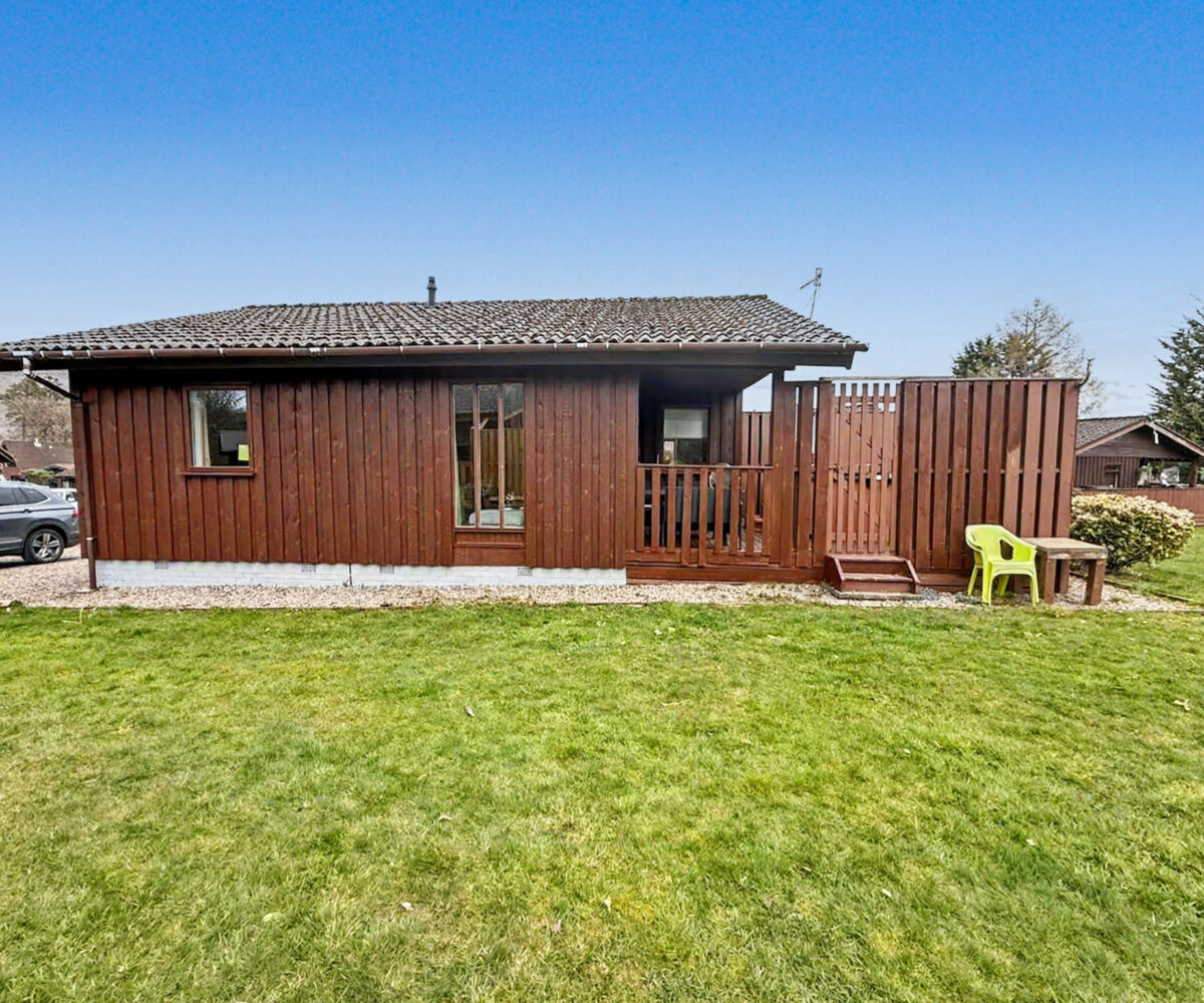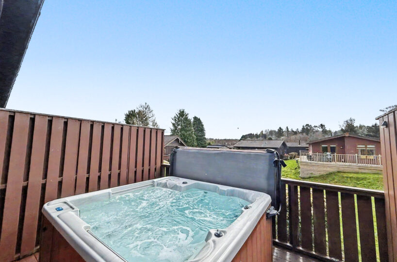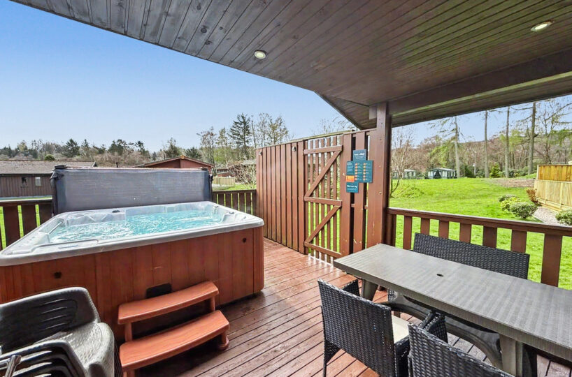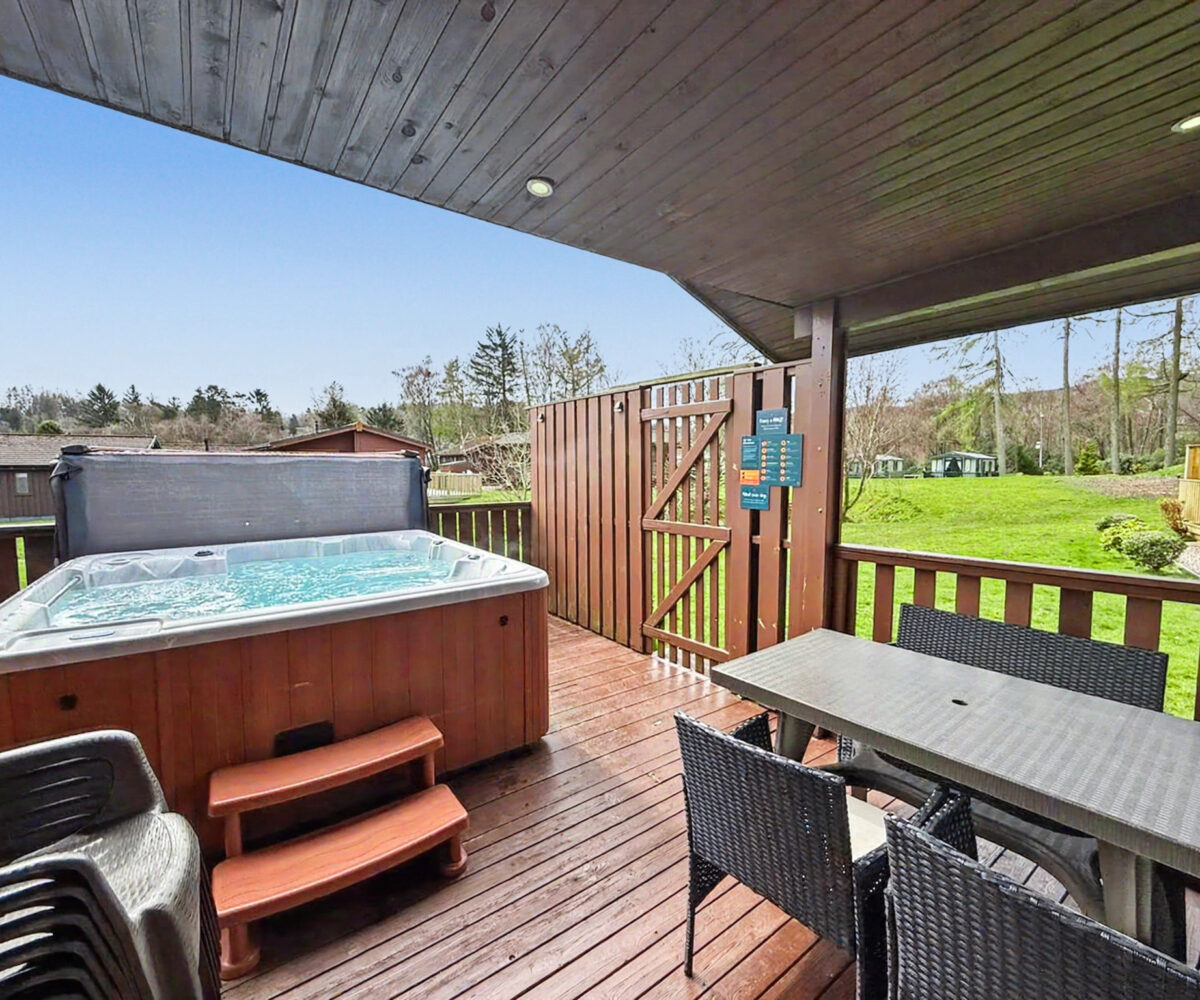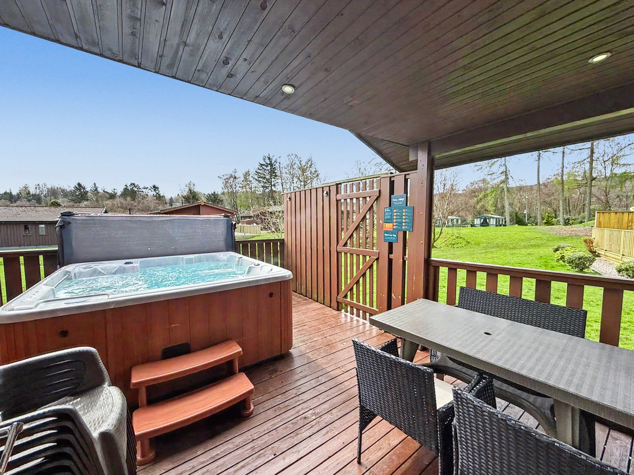 The property has a generous decked terrace with space for dining furniture and a hot tub, and an awning to enjoy the fresh air and outdoor leisure time whatever the weather. There is a chipped driveway to accommodate 2 vehicles outside the property.