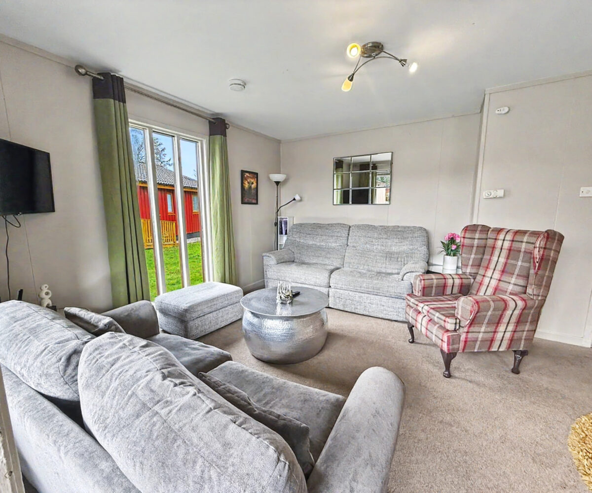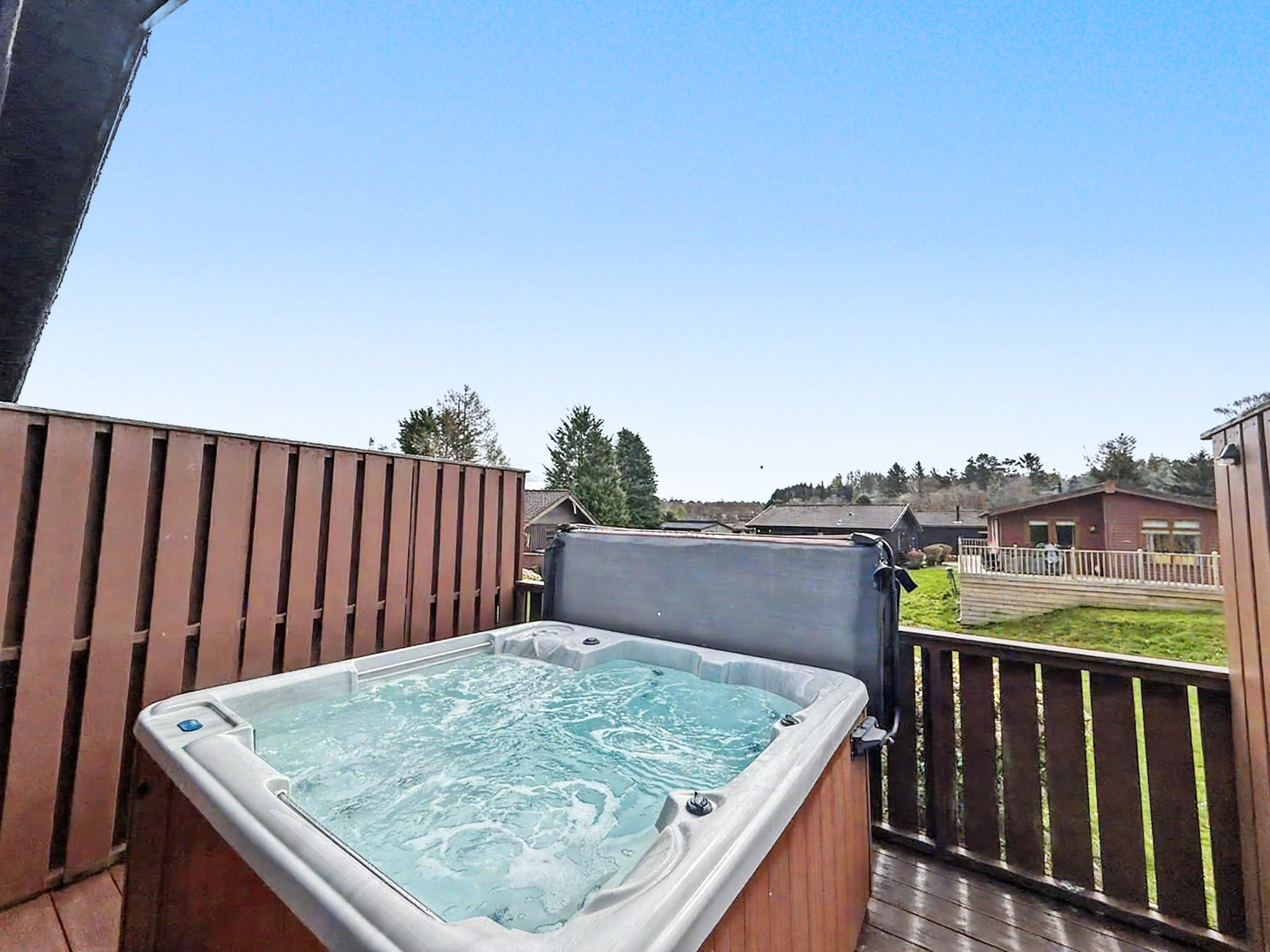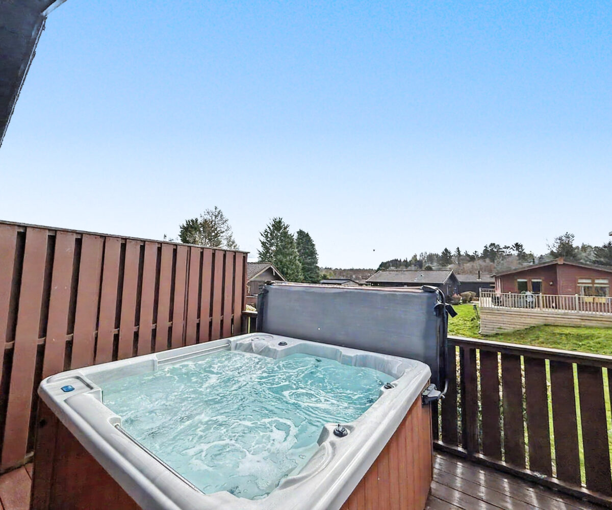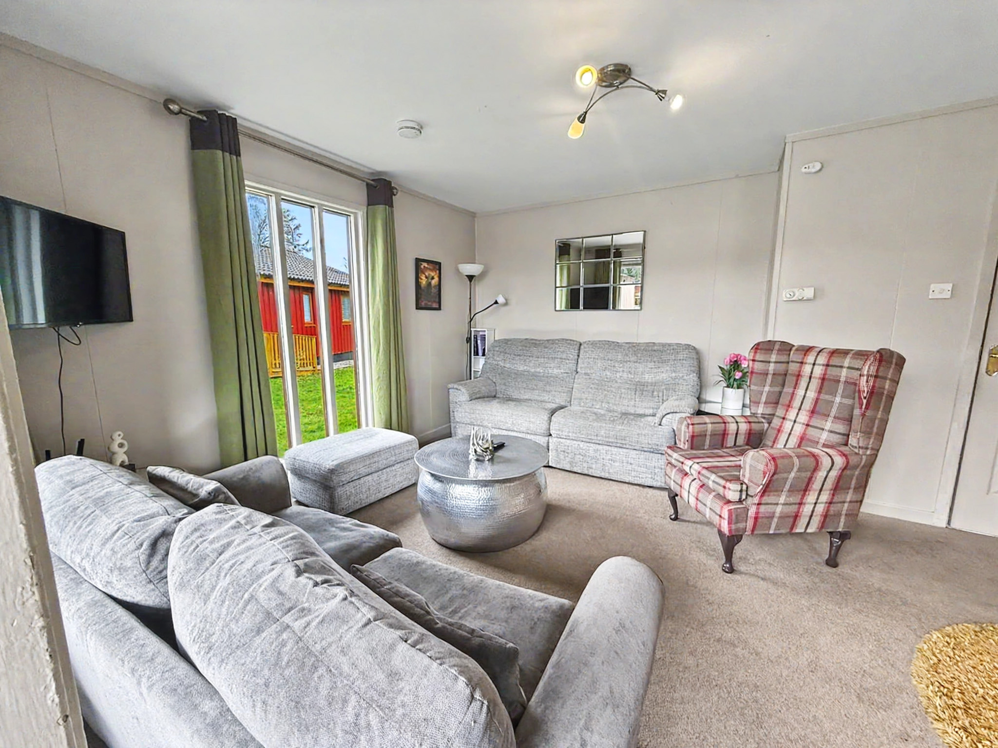 The property has a generous decked terrace with space for dining furniture and a hot tub, and an awning to enjoy the fresh air and outdoor leisure time whatever the weather. There is a chipped driveway to accommodate 2 vehicles outside the property.