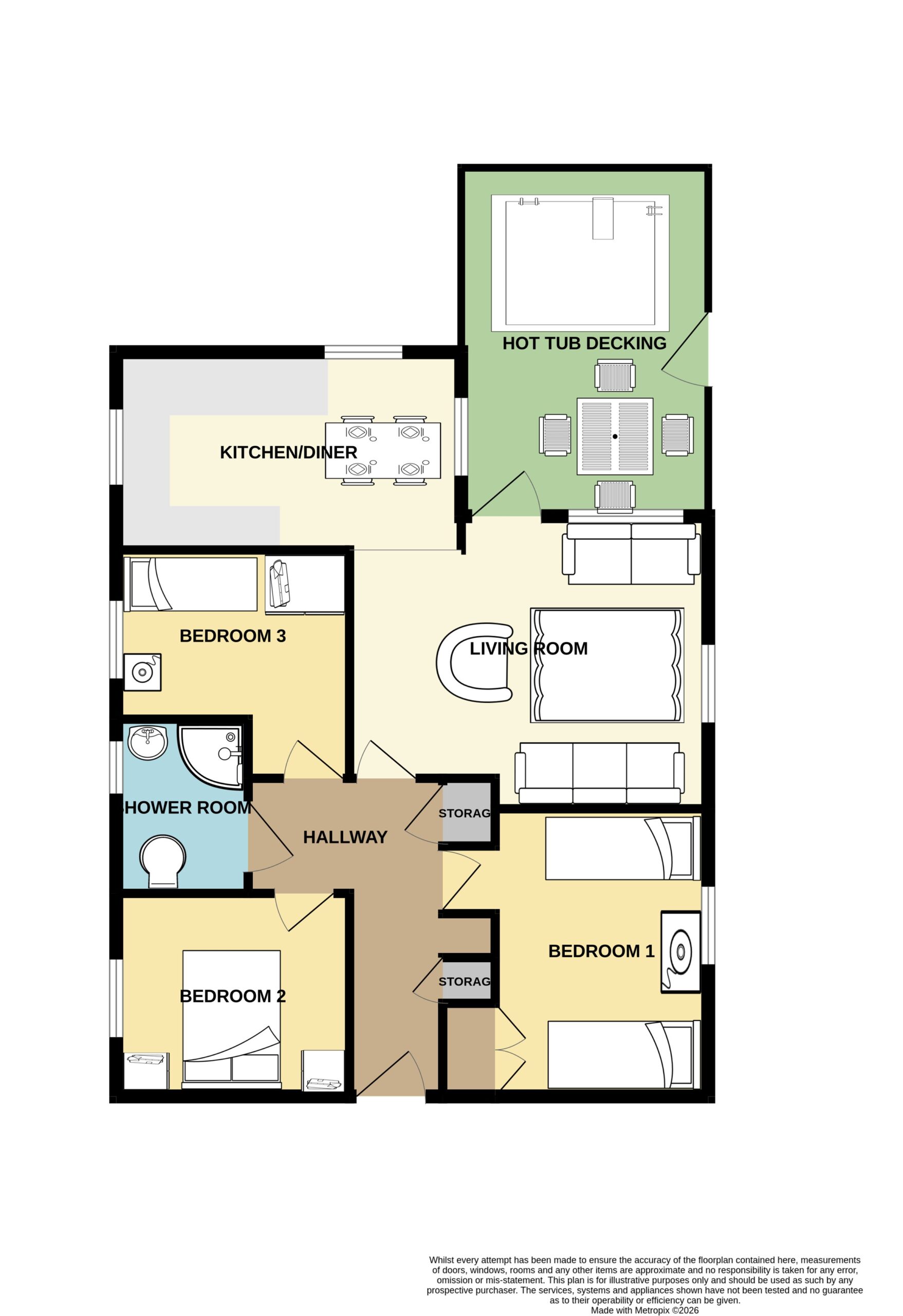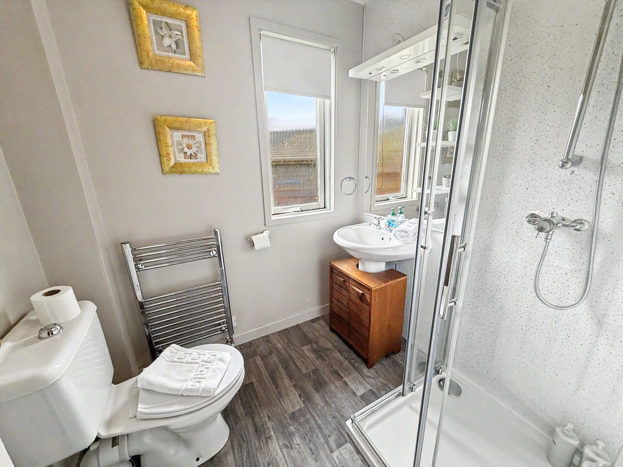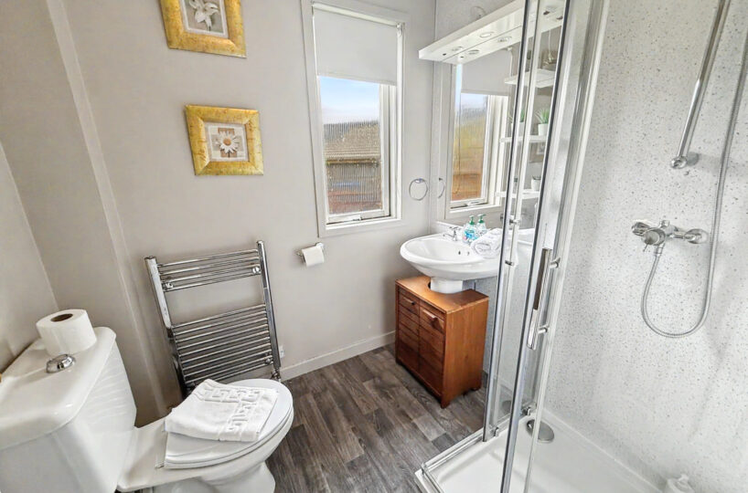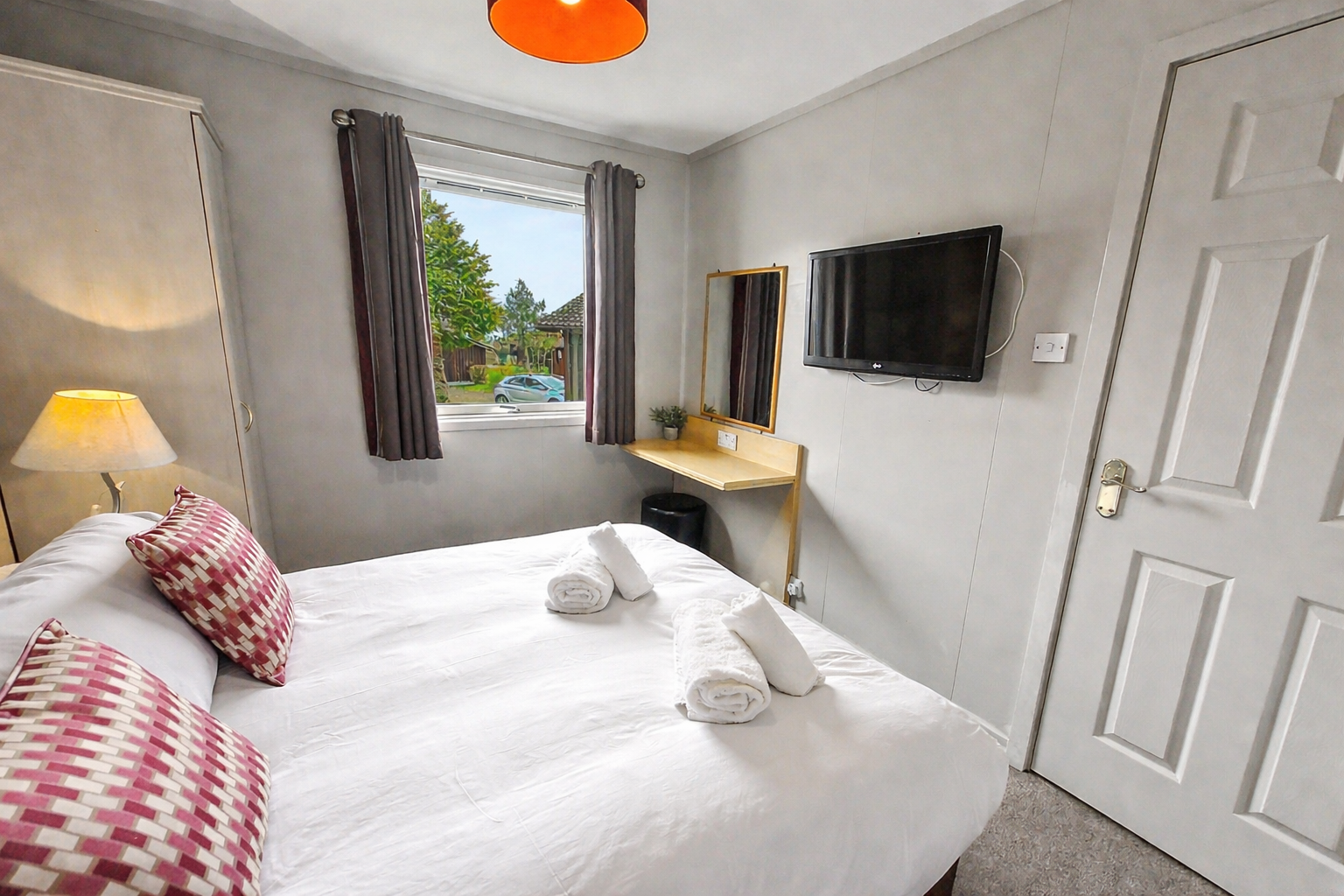 The property has a generous decked terrace with space for dining furniture and a hot tub, and an awning to enjoy the fresh air and outdoor leisure time whatever the weather. There is a chipped driveway to accommodate 2 vehicles outside the property.