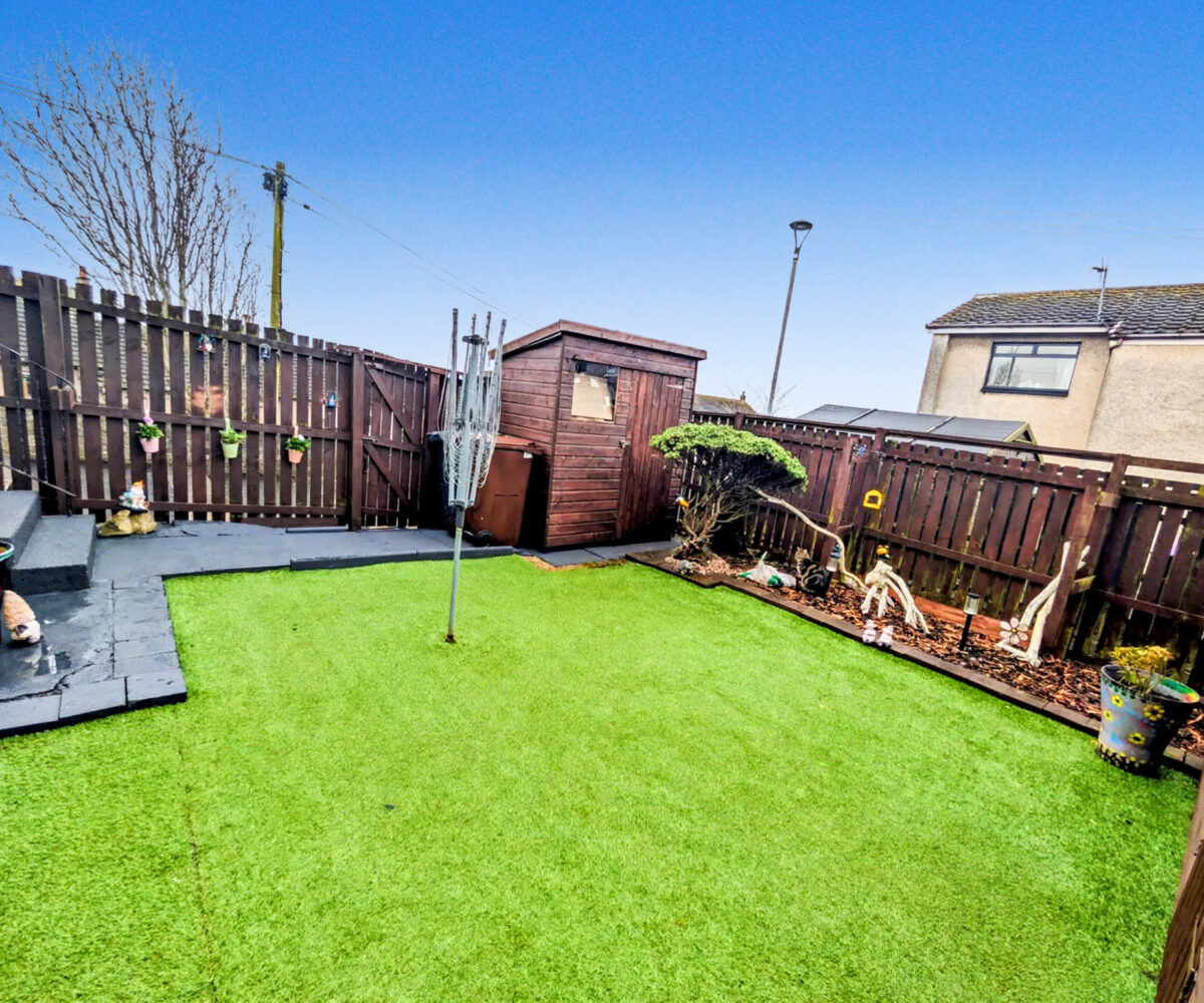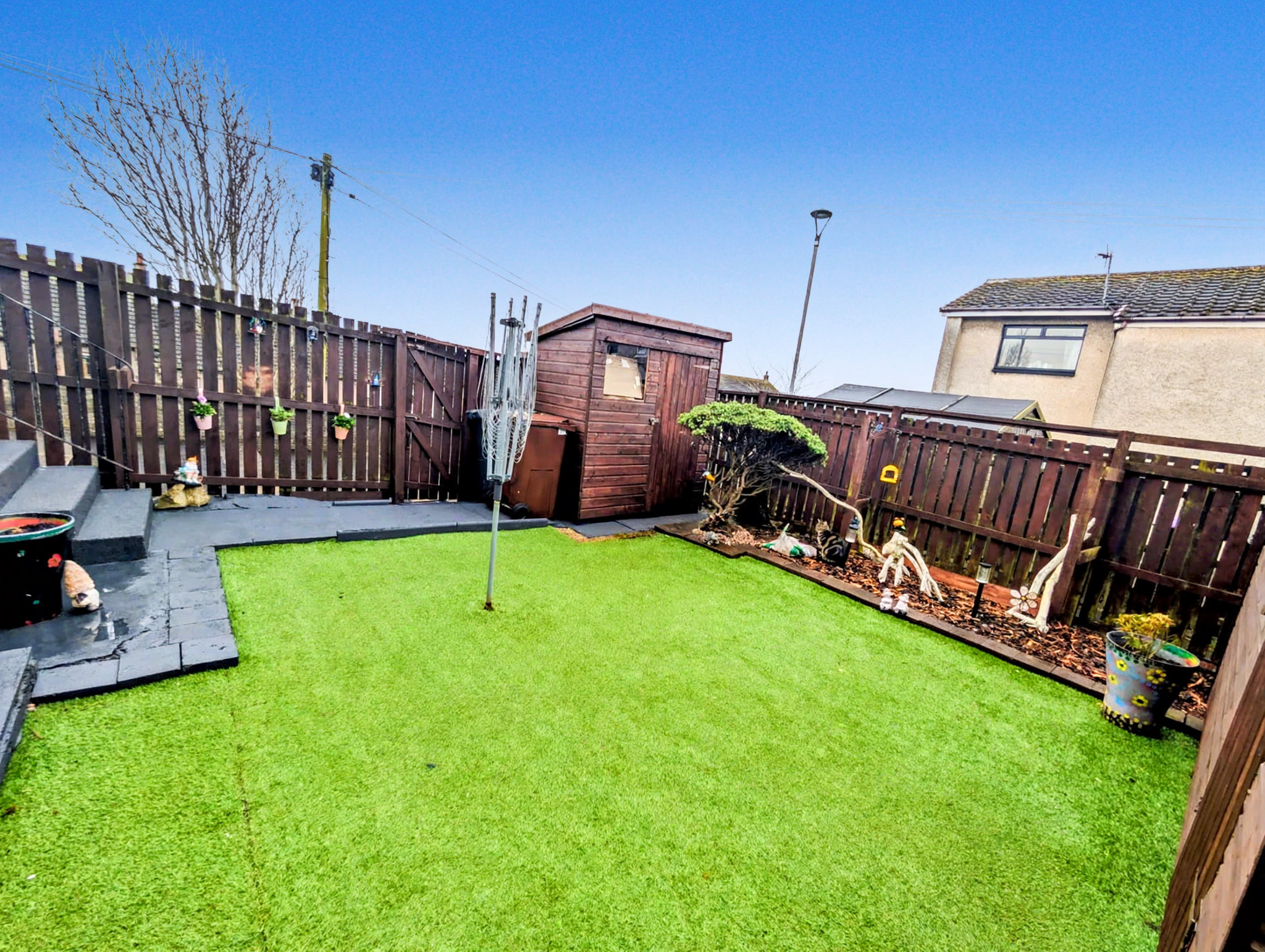 Externally at the front of the property there is a well maintained lawned garden and at the rear the garden is fully enclosed for a child and pet safe environment and is laid with astrolawn and paved with borders for plants and 2 timber sheds for outdoor storage.