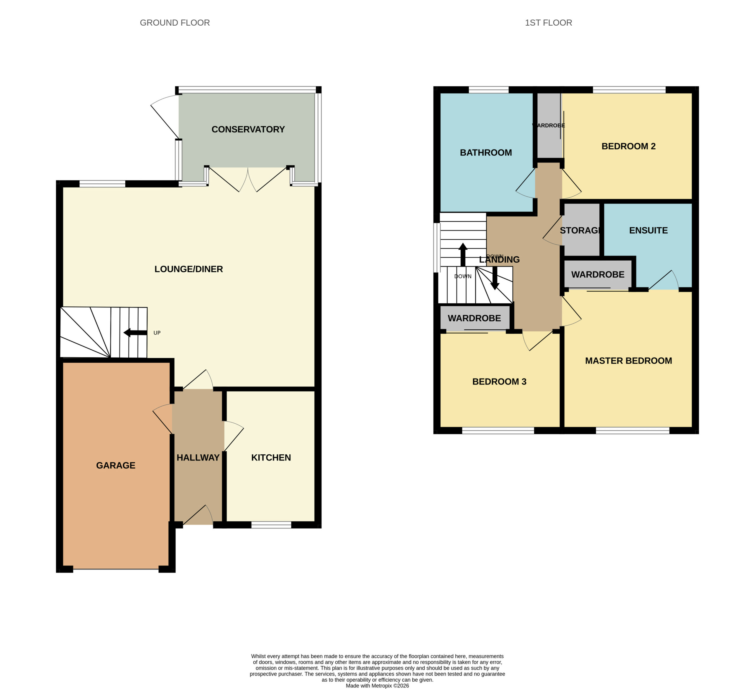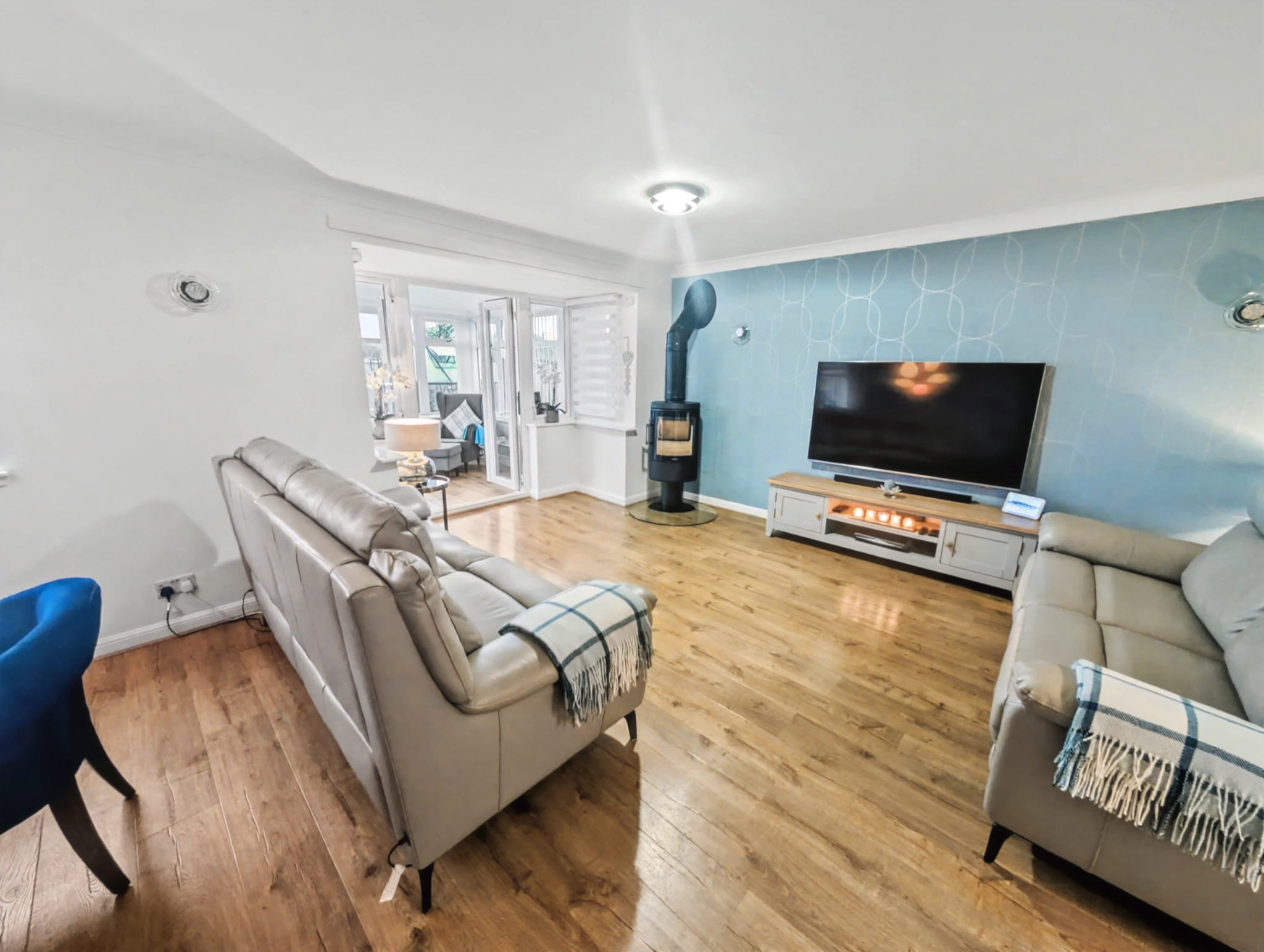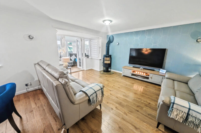 The accommodation over two levels comprises on the ground floor a welcoming entrance hallway with access to the integral garage, a modern fitted kitchen with integrated appliances, a spacious lounge diner with a wood burning stove, a generous dining area and French doors into the bright conservatory creating a seamless indoor outdoor flow and flooding the room with natural light. Upstairs the property continues to impress with 3 beautifully presented bedrooms, all with integrated wardrobes and the master bedroom with an en suite shower room, and completing the accommodation is a stylish family bathroom.