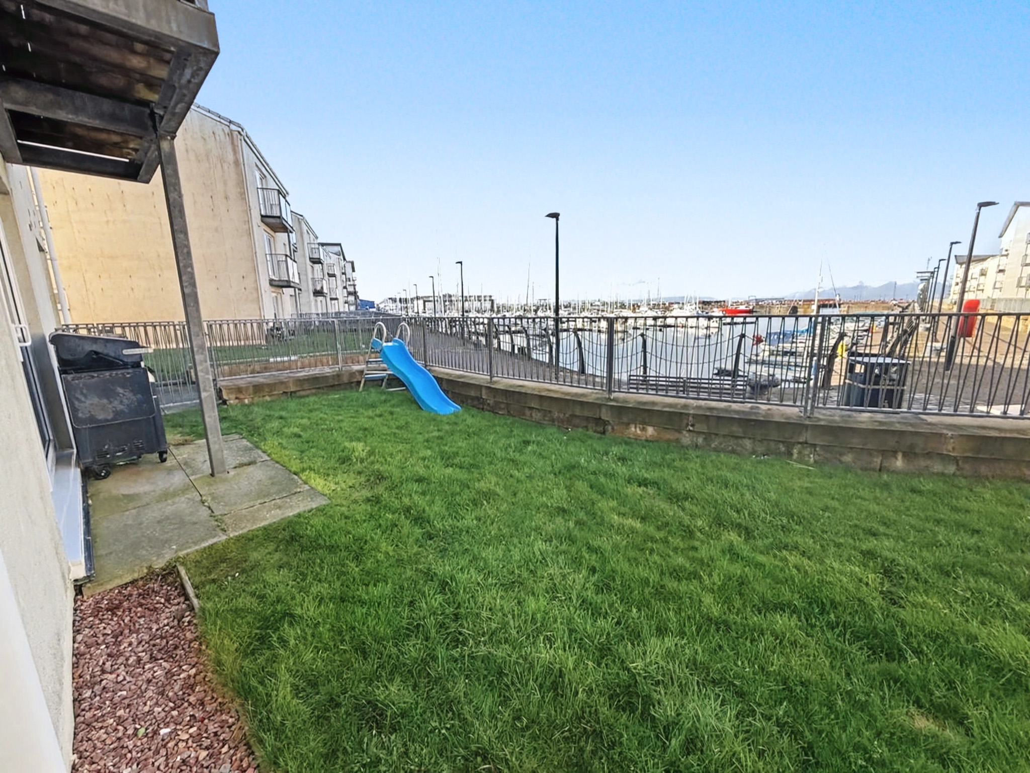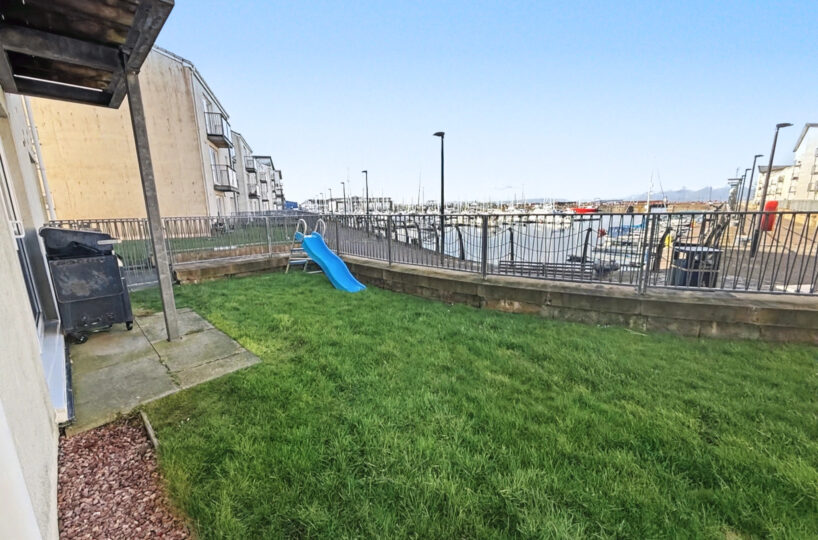 The property is immaculately presented and offers all on one level ground floor accommodation, a private garden and boasts views to die for over the Marina and the Isle of Arran.
